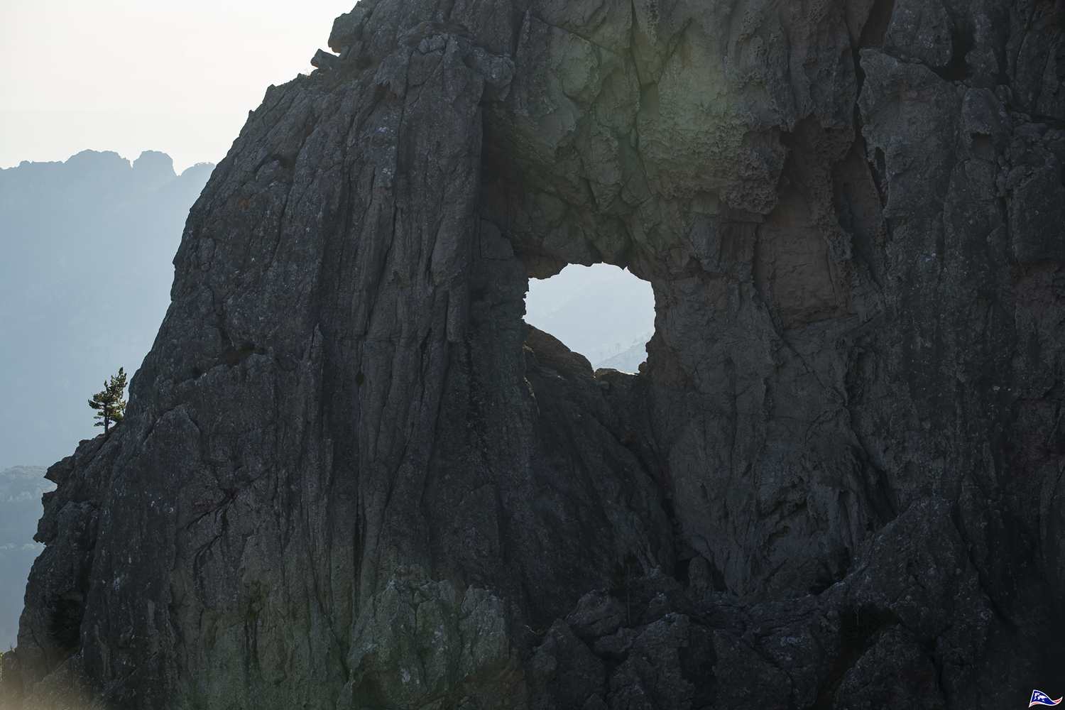 At the heart of the Regional Nature Park of Corsica, a geological curiosity attracts a lot of hikers. From the pass of Bavella, the bravest climb to an altitude of about 1,350 m (4,429 ft) to have a close look at a hole piercing the rock. The nicknamed « hole of the bomb » seems very small at a long distance but it is actually 8 m (26 ft) in diameter because of the natural erosion of the granitic rock by wind and rain.