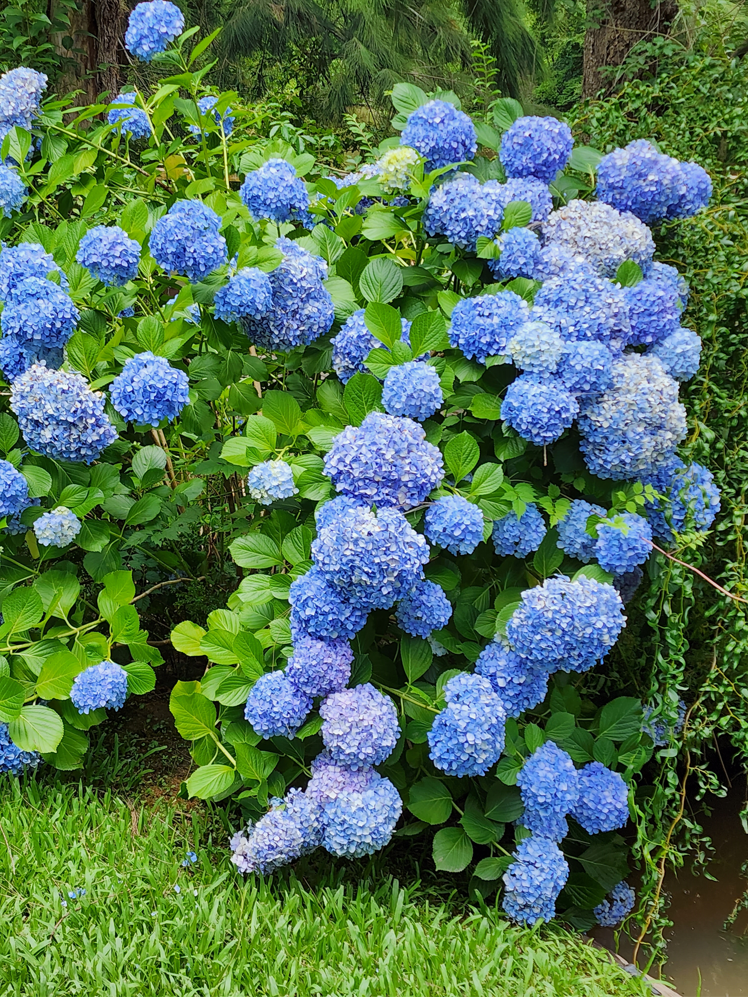 Planta perteneciente al género Hydrangea. Forma un arbusto de algo más de un metro de altura, de porte redondeado, hoja caduca y propio de climas templados. Sus hojas tienden a ser de un bonito verde brillante, aunque sin duda lo más vistoso de la planta son sus ramos de flores, que pueden ser blancos o de tonos rosados o azules, dependiendo de la variedad y el pH del suelo.