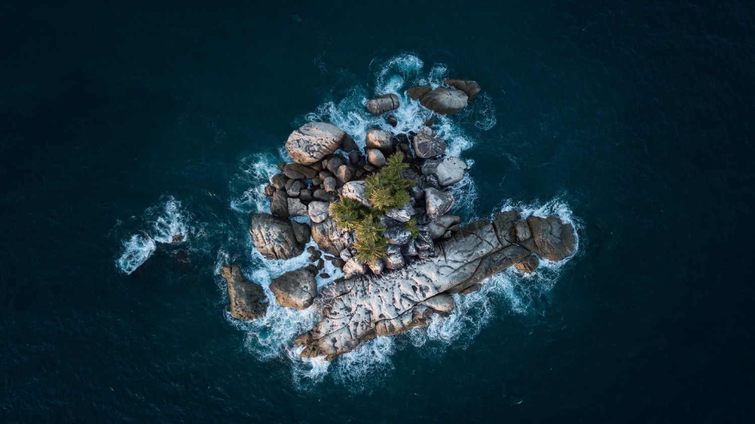 Un petit ilôt déserte en vue satellite. Photo prise par drone.