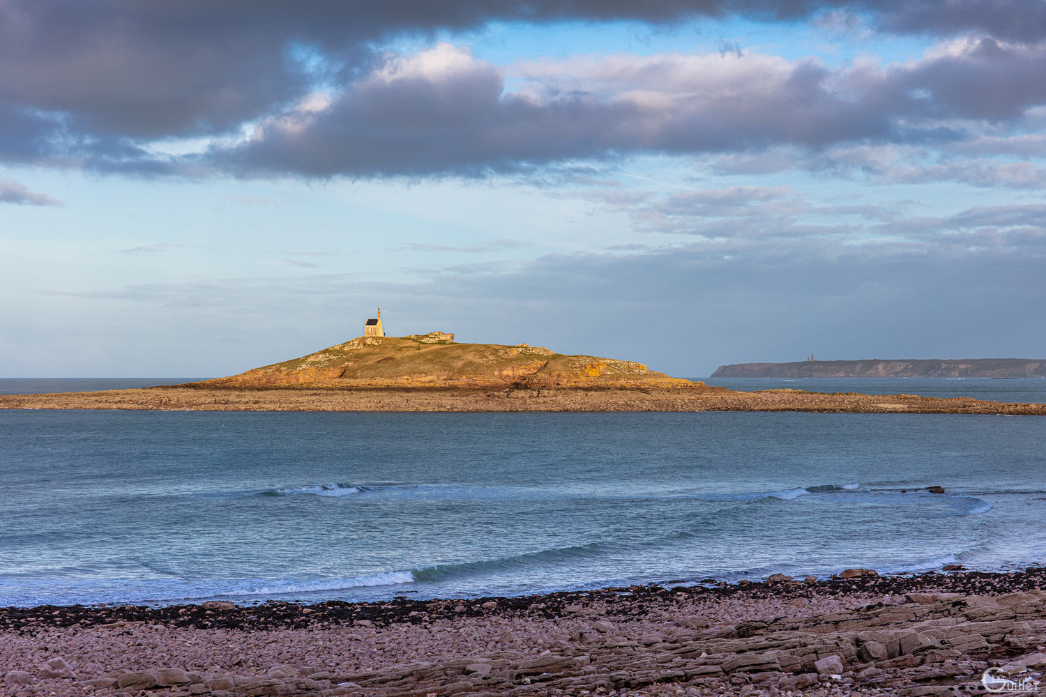 Îlot Saint Michel sous la lumière du soleil en fin d'après midi hivernale - Erquy 2020