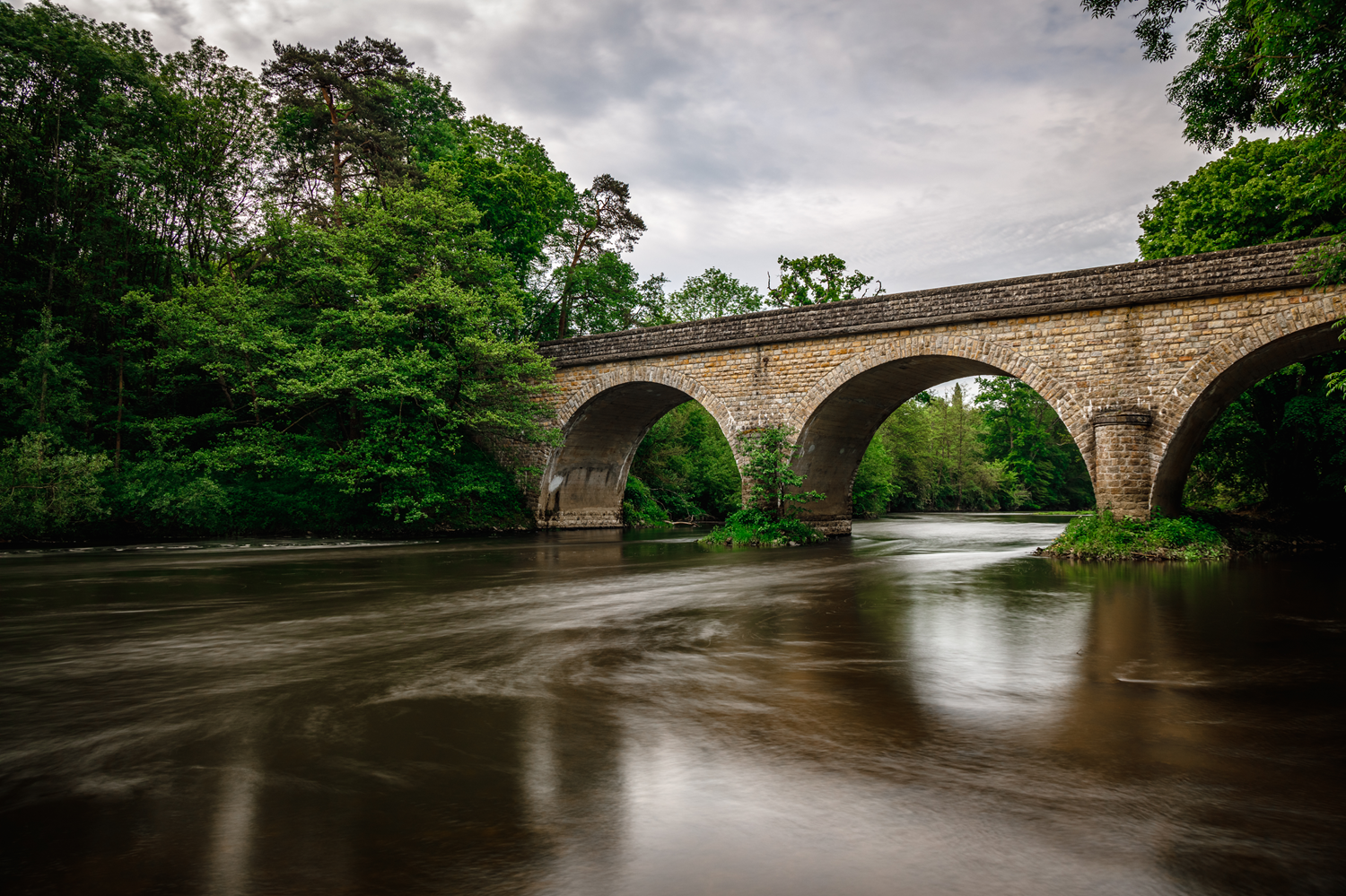 The Vey bridge spans the Vire near its mouth in the municipality of Veys, on the border between the Manche and Calvados departments in Normandy. It was built between 1804 and 1825 by Jacques-Pierre Pattu (1772-1839), the chief engineer of Calvados, according to plans proposed by the engineer of the Ponts et Chaussées Joseph Cachin (1757-1825). The bridge, which aimed to replace a ford only passable at low tide, is taken by a departmental road and the GR223 hiking route.