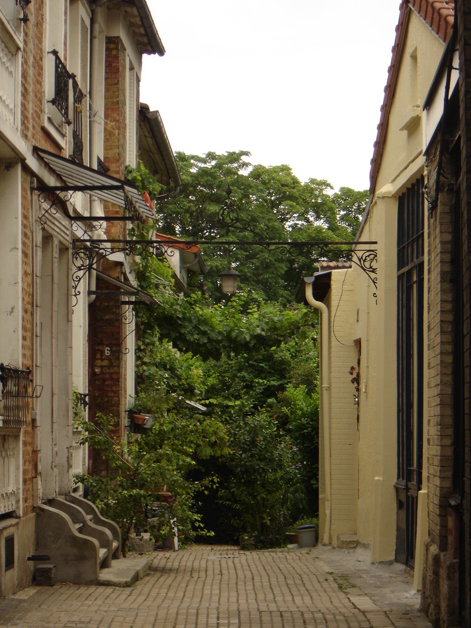 Vue d'une partie des maisons individuelles prise depuis la grille d'entrée de l'immeuble du 16 rue du Transvaal derrière laquelle se cache la Villa Castel.
