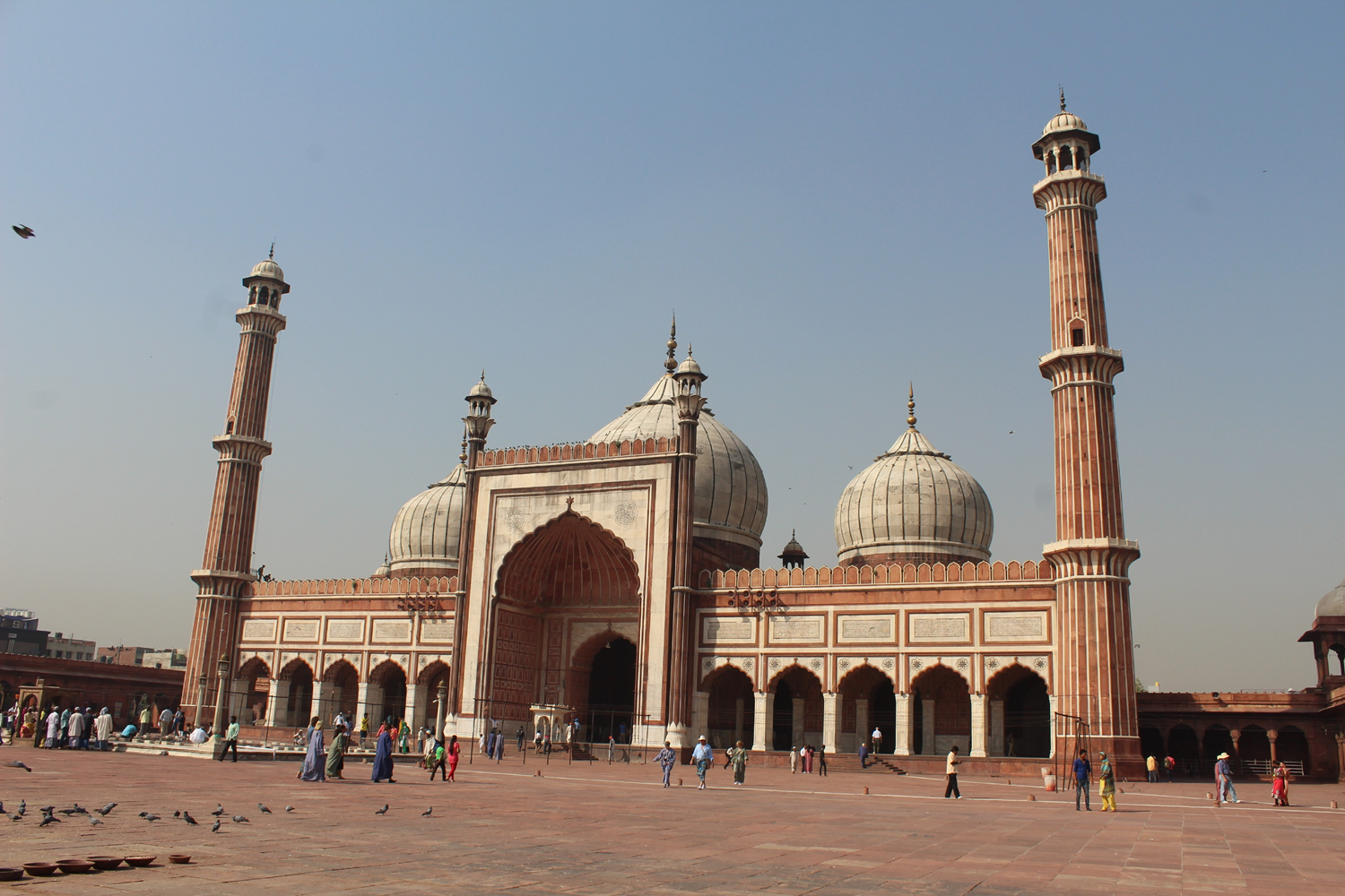 Fue construida por el emperador mogol Sha Jahan entre 1644 y 1656 con un coste de un millón de rupias, y fue inaugurada por un imán de Bujará, situada en el actual Uzbekistán. La mezquita fue completada en el año 1656 con tres grandes puertas, cuatro torres y dos minaretes de cuarenta metros de altura construidos a franjas de arenisca roja y mármol blanco. El patio puede alojar a más de veinticinco mil personas. Hay tres cúpulas en la azotea, que están rodeadas por los dos minaretes.