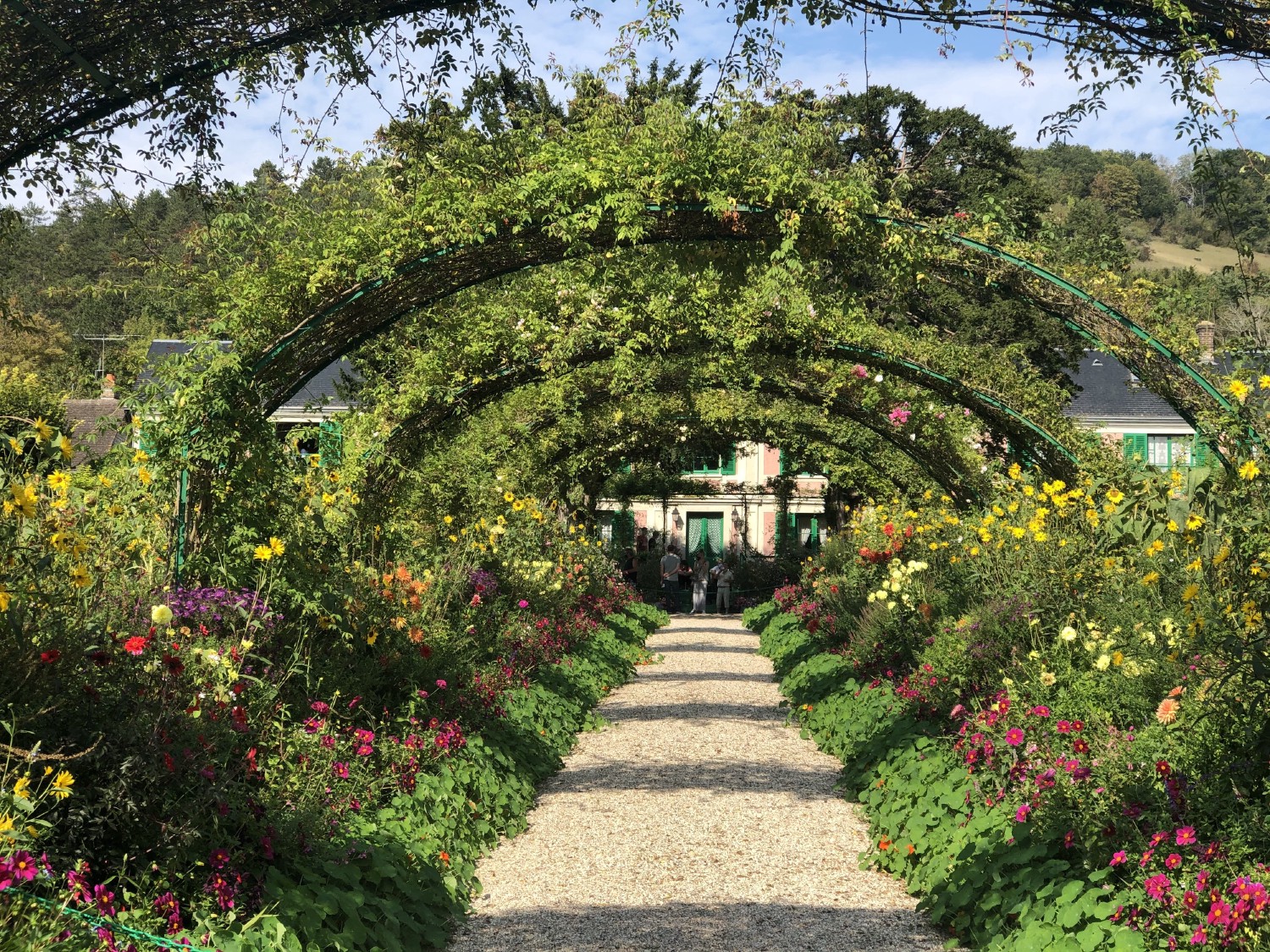 Face à la maison de Claude Monet les arches et allées de massifs fleuris émerveillent les sens.
