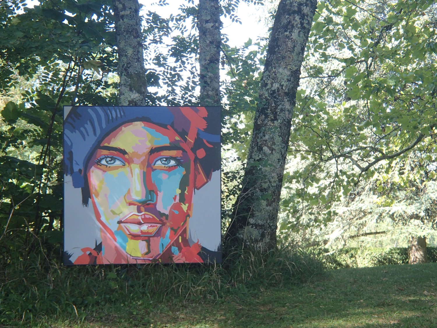 Un ami peintre présente ses toiles dans la fraîcheur des arbres de son parc du Centre de la France.