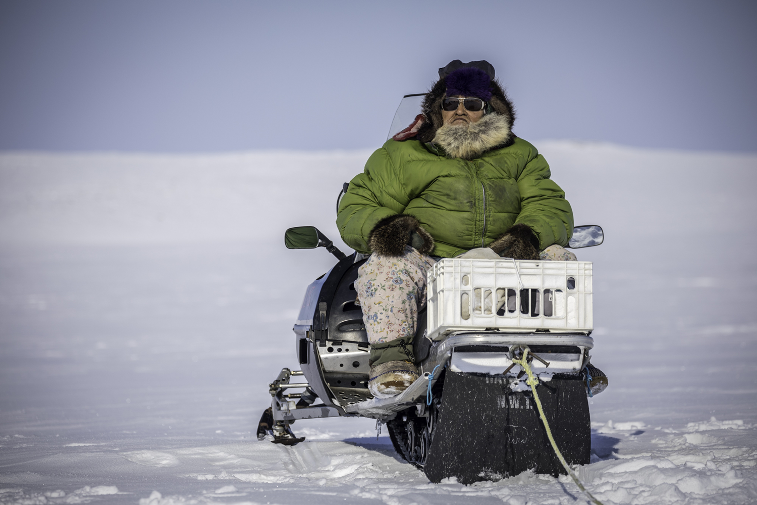Kate, Inuk woman on a snowmobile