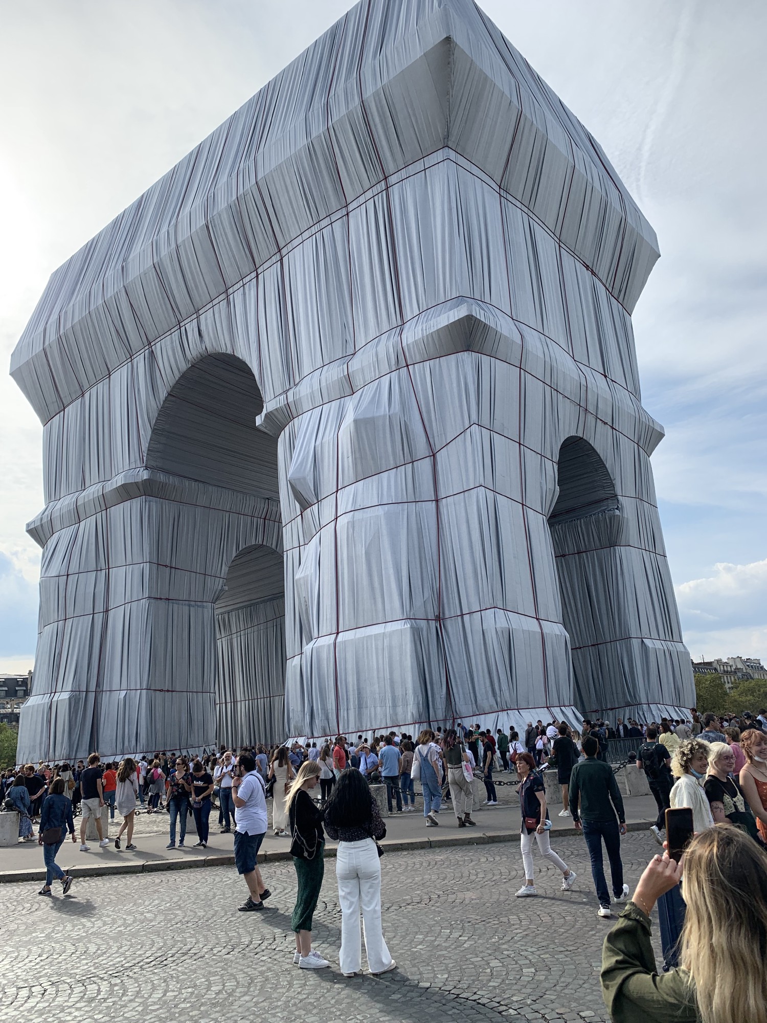 Il a fallu 20 000 mètres de tissu pour réaliser cet emballage, le second de Christo et Jeanne-Claude à Paris après celui du Pont Neuf en 1985. Leur 1ère réalisation parisienne éphémère a été réalisée rue Visconti, en 1962. La rue avait bloquée par un mur de 89 barils de pétrole.