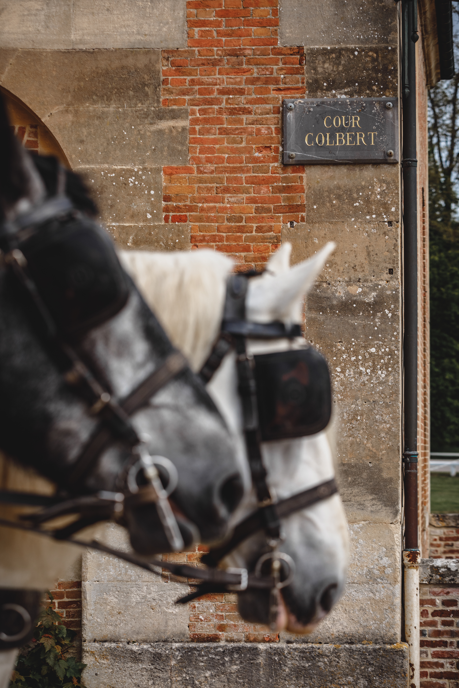 The main courtyard of the Haras National du Pin around which the various buildings of the stud are arranged pays homage to Colbert. It was indeed Jean-Baptiste Colbert (1619-1683) who, in 1665, initiated the Royal Studs when he was Louis XIV's Intendant of Finance. Its objective was to limit the acquisition of foreign horses and fundamentally reorganize French breeding by standardizing breeds, producing horses for very specific purposes, stationing stallions with private individuals, and distributing the breeding stock of mares and stallions over the whole territory. In 1676, Colbert appointed another Colbert, his son Jean-Baptiste Colbert de Seignelay, to head the administration of the Royal Studs.