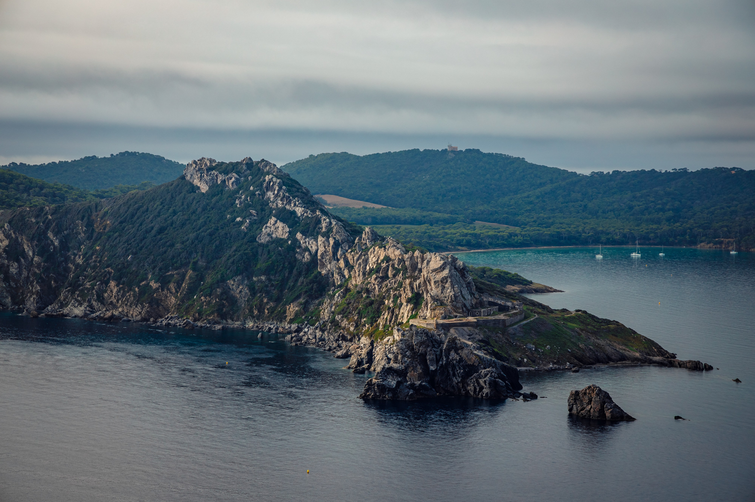 Behind the rocky barrier of Cap des Mèdes, the central plains of Porquerolles Island are home to cultivated land. While Phocaen remains of terraced crops have been found at Pointe de la Galère, the island owes its agricultural orientation to the Romans. The historical testimonies evoke cultures of cereals, olive trees, and vines. Porquerolles' agricultural development is also linked to its last private owner, François Joseph Fournier, who acquired the island in 1912. He planned to establish a model farm intended to provide the inhabitants with food autonomy. He organized the cultivation of the plains and abandoned forests, set up market gardening greenhouses, installed infrastructures (electrical plant, grocery store, cooperative, dispensary), and organized maritime services to the island. The 494 acres (200 ha) of vines of the island then produced 12,000 hectoliters of wine, and its cellars were the largest in the Var department.