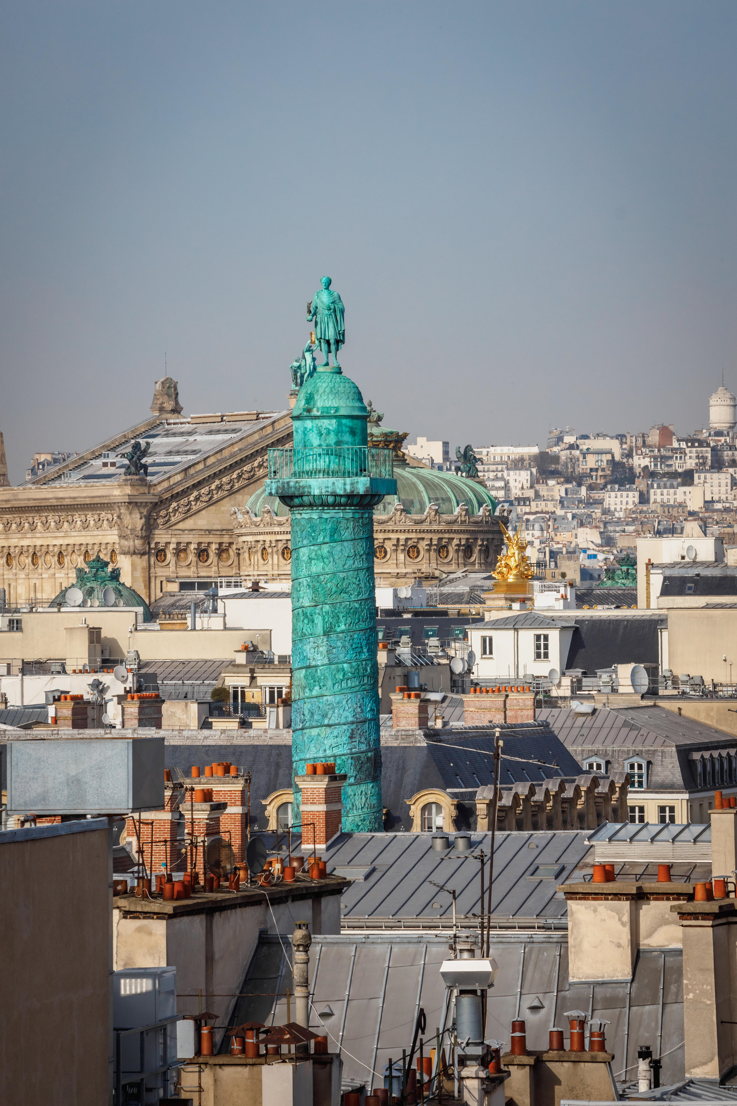 The Vendome Column is visible from the terrace of the Le Meurice Hotel. No less than 176 interior steps lead to the foot of the statue of Napoleon I, perched 44 metres high. Inspired by the column of the Emperor Trajan erected in the centre of the forum in Rome, the First Consul Bonaparte decided to build an identical column on the Place Vendôme, on the site of the equestrian statue of Louis XIV, destroyed during the Revolution. In January 1806, Napoleon I dedicated the monument to his victorious Grande Armée at Austerlitz and had the cannons taken from the enemy melted down to make the spiral of 425 bronze bas-reliefs that compose it.