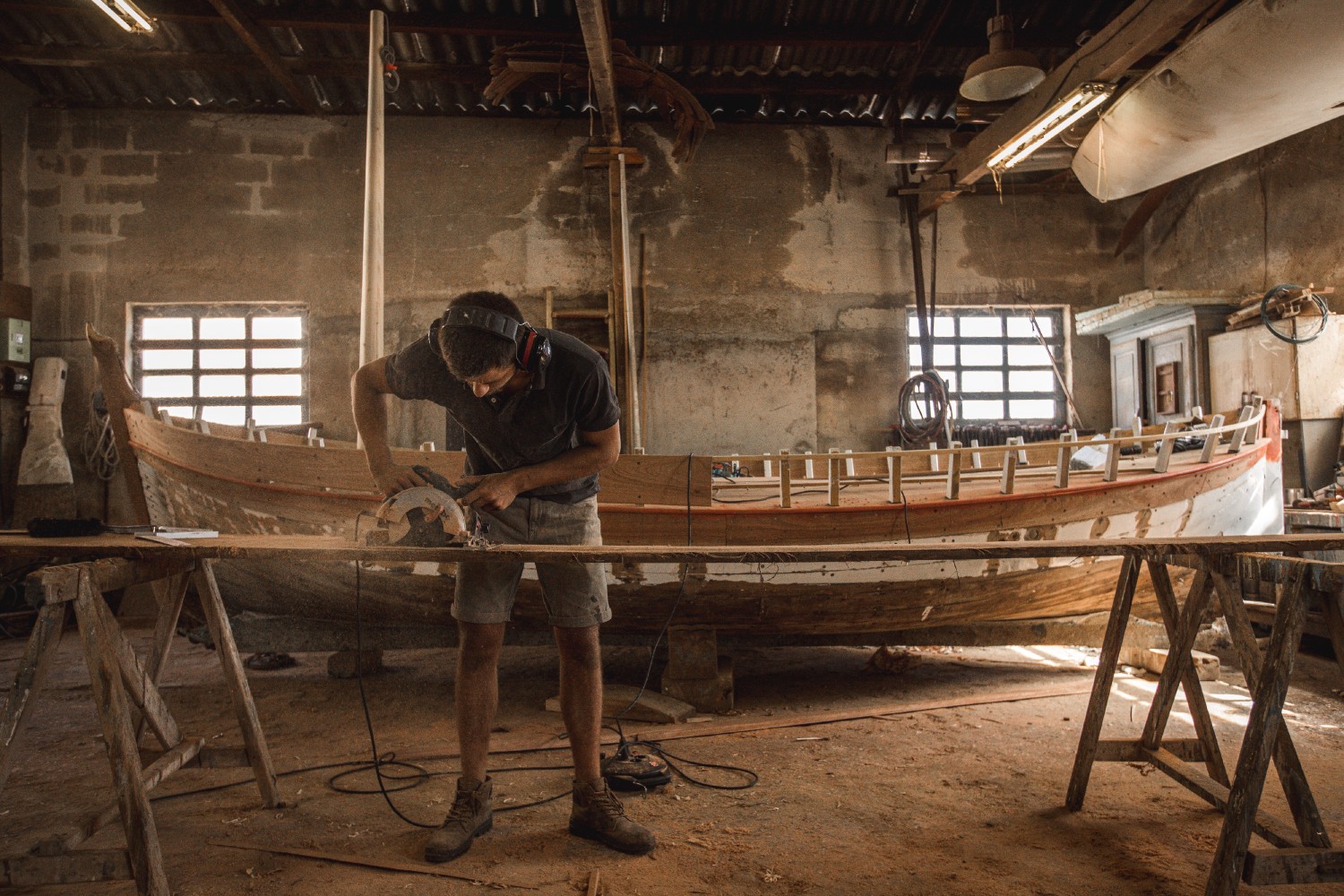 The construction of a Marseille traditional barquette begins with the tracing of the hull plan that defines the templates that will give the boat its lines. It is then necessary to carry out the readings of the rabbets of the keel in which the side planks will fit. This initial work is followed by the cutting of the various pieces with a circular, jigsaw, or band saw, then using various rasps and sanding blocks.