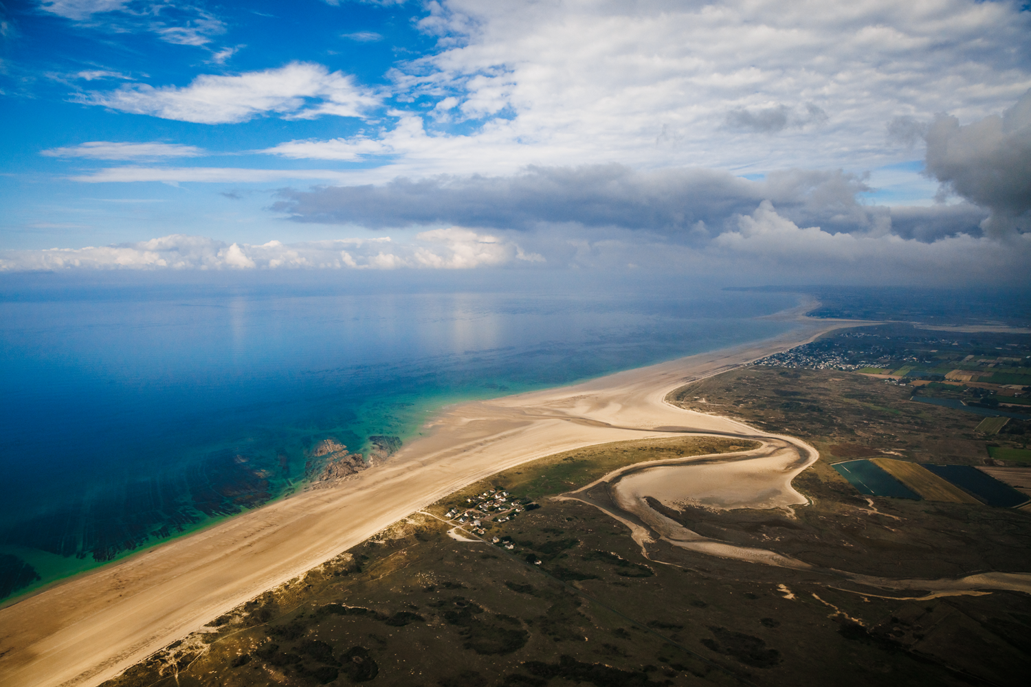 56 miles (90 km) long, the Côte des Havres forms a part of the western coast of the Manche department. It begins at Cap de Carteret and unrolls its eight coves to the Pointe du Roc in Granville. Each cove is formed by the mouth of a river which forms a sandy haven. The harbors of Carteret, Port-Bail-sur-Mer, Surville, Lessay, Geffosses, Blainville, Regnéville and Vanlée follow one another. Behind the coast, market gardening has spread over vast stretches of sand known as mielles.
