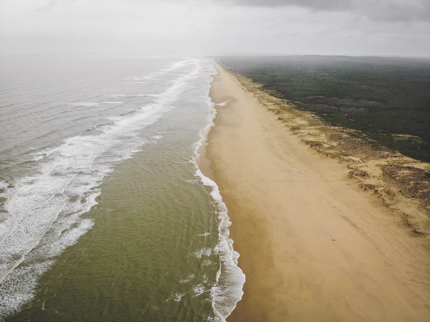 Formant une vaste plage longue d'une vingtaine de kilomètres environ, elle est bordée de massifs dunaires, eux-mêmes partiellement fixés par la forêt domaniale de la Coubre, une pinède répondant à la forêt domaniale de la pointe de Grave.