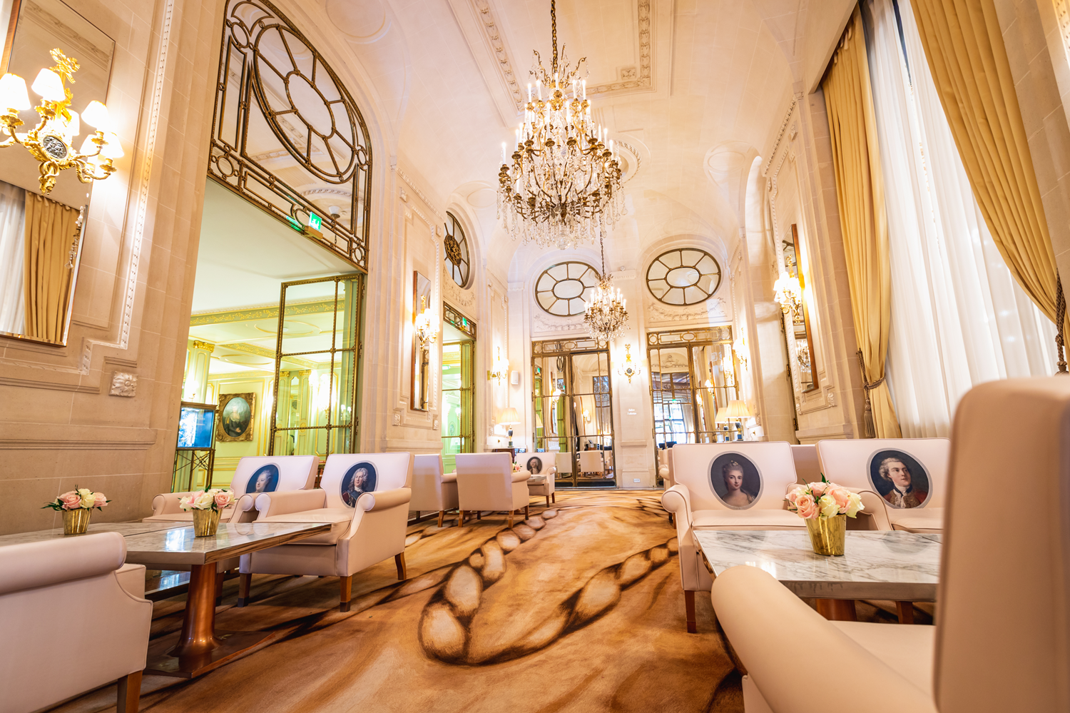 Since the 1950s, the Le Meurice Hotel has always welcomed atypical artists. Pablo Picasso celebrated his wedding there while Salvador Dalí spent a month there every year for 30 years. Everywhere, contemporary works of art mingle with the classical style of the 18th century. Philippe Starck has revamped the decor and transformed the Pompadour Gallery from a mere passageway into an extension of the bar. Its comfortable armchairs are all decorated with portraits of personalities of the time. You can enjoy your brunch in the company of Robespierre, the Montespan, Turenne or Voltaire.