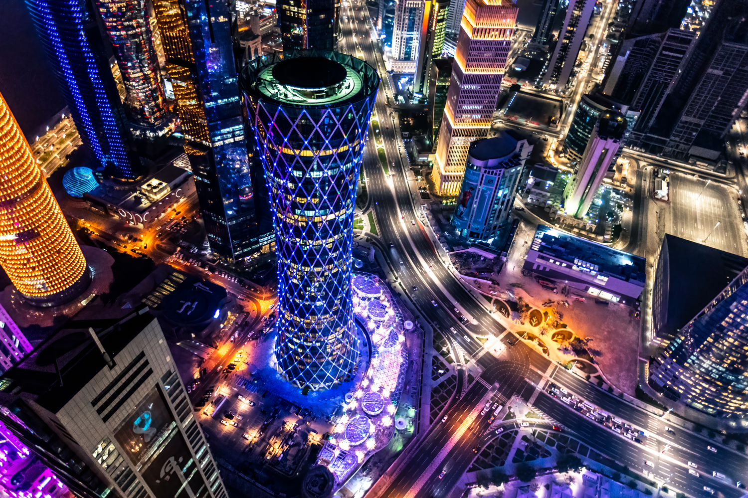 The 663 feet (202-metres) high Tornado Tower – also known as the Qipco Office Tower – is a skyscraper with 861,113 ft² (80,000 m²) spread over 52 floors. It is located in the West Bay business district of Doha, the capital of Qatar. It owes its nickname to its hyperboloid structure, which gives it the silhouette of a desert tornado. The majority of the floors are occupied by offices, but there is also a wellness centre and restaurant area (27th and 28th floors) and a helicopter landing pad on the 51st floor. Built between 2006 and 2008, the tower has exterior lighting designed by German Thomas Emde. The lighting artist designed a programmable system capable of producing more than 35,000 variations of light patterns, including the twisting motion of a tornado. At night, the tower offers a spectacular light show that can be seen from afar.