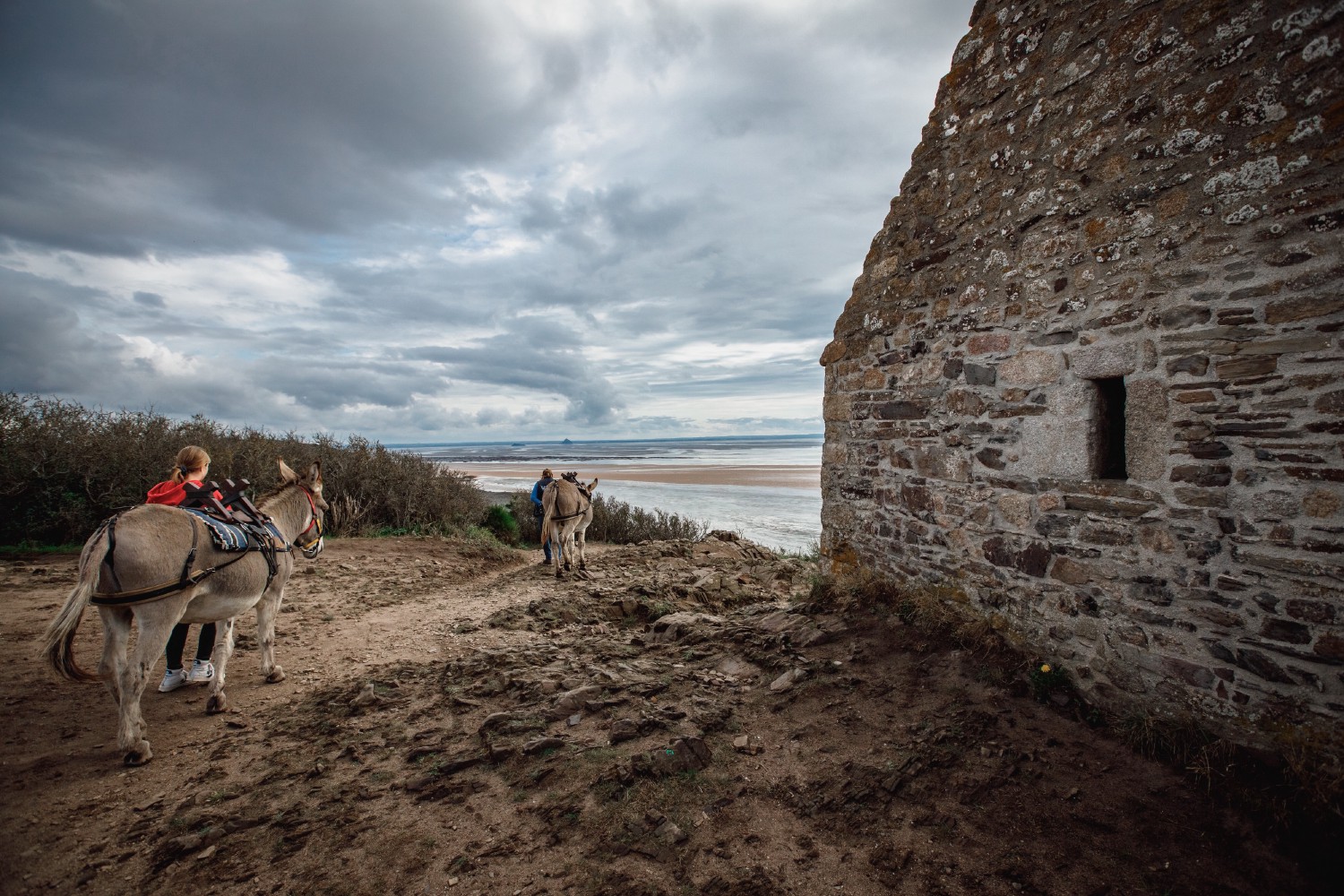 Located on the cliffs of Carolles, the ‘Cabane Vauban’ (Vauban hut), built at the end of the 17th century, offers an impressive overlooking of the Mont-Saint-Michel bay. The Mont can be seen towering above a sea of sands, with the Tombelaine rock just besides it. At low tide, the immense bay reveals its sandbanks as far as the eye can see, like a reverence made to the Mont. With the constant changes in light, a walk along the customs officers’ path with a Cotentin donkey (Equus asinus) provides an instant insight into the wilderness of the bay.