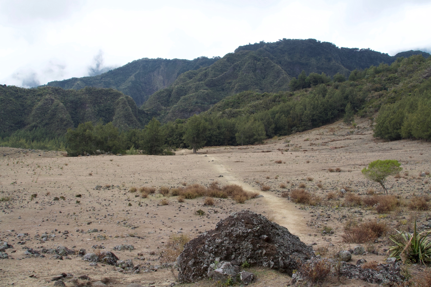 La plaine au Sables (et pas la plaine des sables qui est à côté de la Fournaise) est un espace de sable perdu au milieu de la verdure entre la Nouvelle et Marla dans le cirque de Mafate.