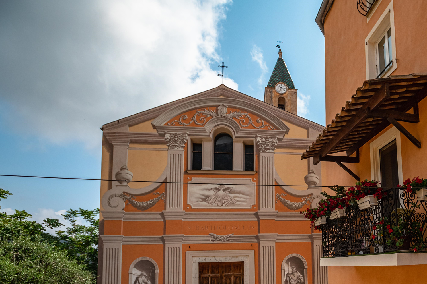 The architecture and interior decorations of Saint-Bartholomew Church in Gorbio are typical of the 17th-century Ligurian baroque style of the countryside. It is particularly present in the region, which has long been under Italian domination. A whole tourist route called Baroque Nisso-Ligure crosses the baroque sites of the Alpes-Maritimes department. It starts from Nice and the coast before entering the middle and high hinterlands through the Paillon, Bévéra, and Roya valleys. This tour testifies to the artistic style born in Italy that became the triumphant expression of the Counter-Reformation.
