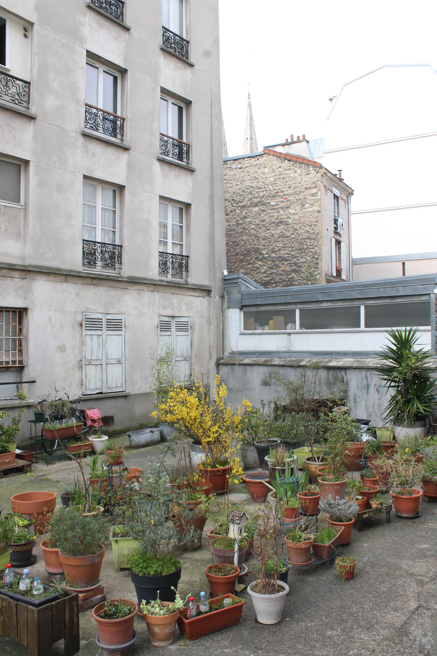 Un cour comme tant d'autres à Belleville, aux murs défraichis mais feurie par ses habitants