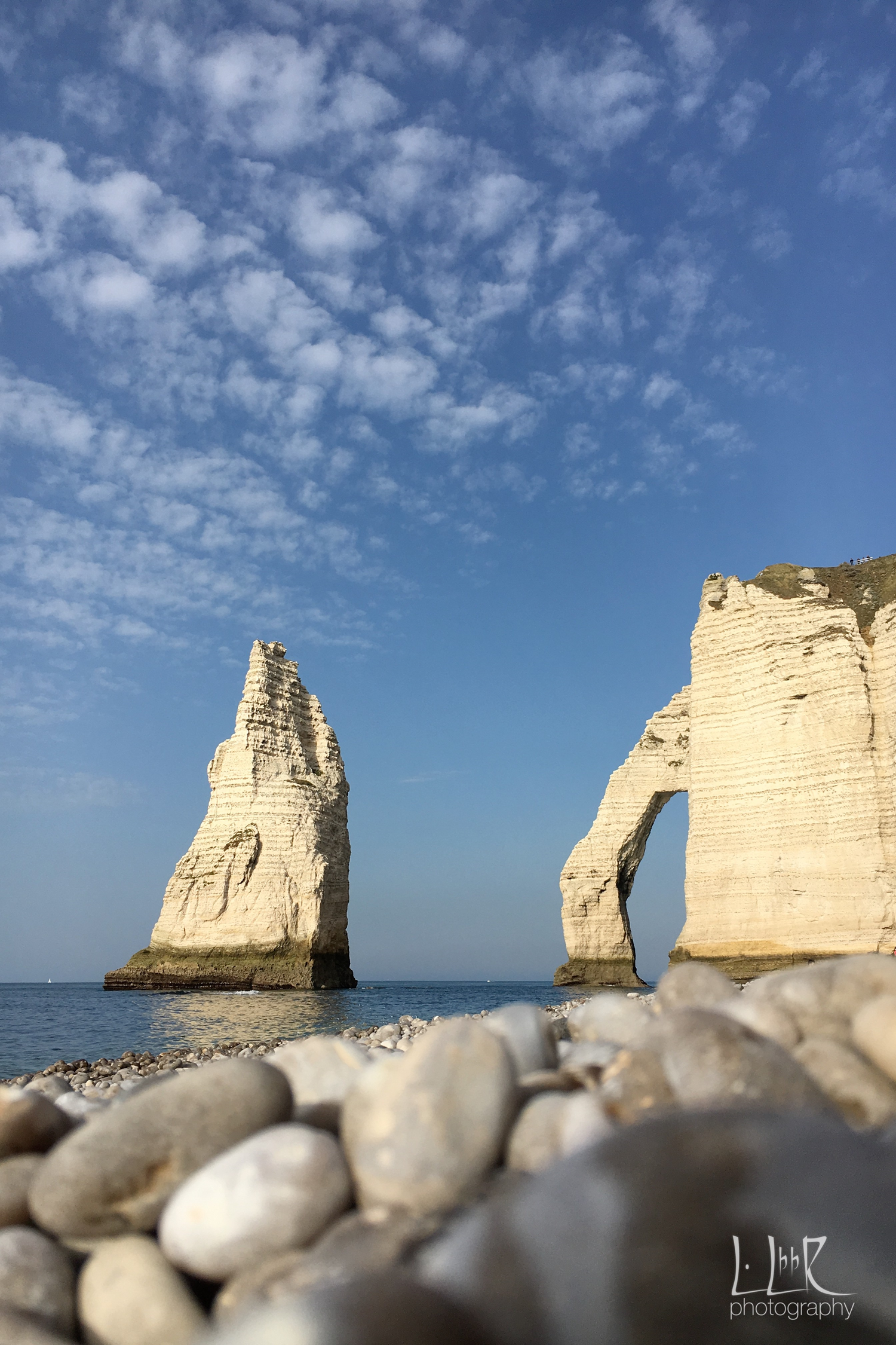 Étretat est célèbre pour ses trois arches successives, la porte d’Amont, la porte d’Aval et la Manneporte.