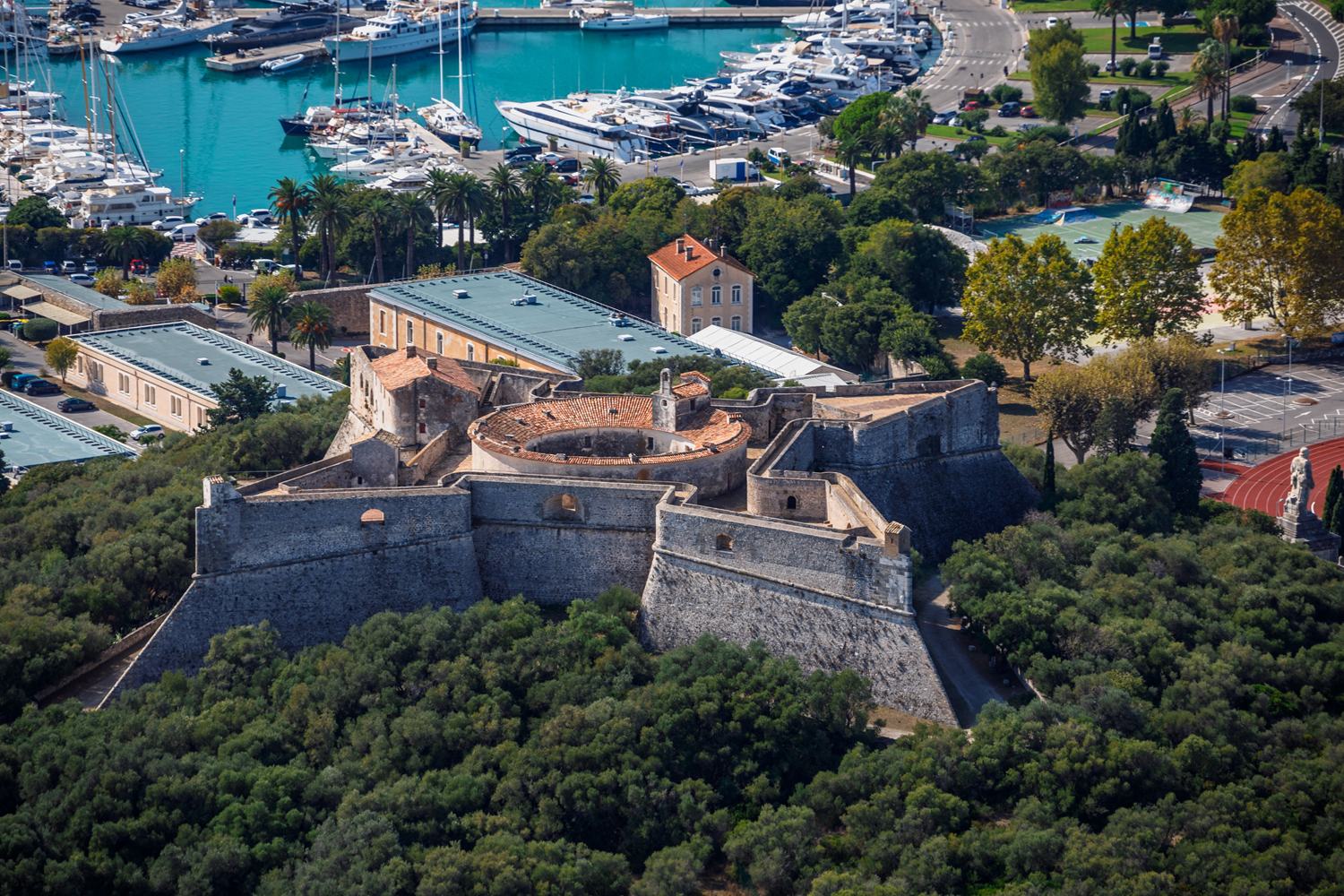 Listed as a Historical Monument in 1906, the Fort Carré of Antibes extends on the Saint-Roch peninsula, 85 ft (26 m) above the Mediterranean. Firstly composed of a chapel and a watchtower, the architectural complex was fortified and transformed into a defensive fortress from 1550 following the invasions of Charles V. In the 17th century, Vauban completed it with two corner half-bastions connected by a half-moon curtain, and a governor's house was added to the fort at the beginning of the 19th century. Today, the Fort Carré includes two enclosures, a walkway with a 360° panoramic view, and a northwest bastion housing the tomb of General Championnet.
