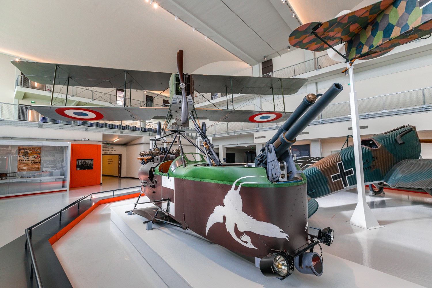 The fuselage (without wings) of a Voisin X two-seater bomber is on display at the Musée de l’Air et de l’Espace (Air and Space Museum) at Le Bourget. This French biplane entered service in 1917, replacing the Voisin VIII to which it was related. It was powered by a Renault 12Fe 12-cylinder V engine that developed 280 hp. Armed with one or two 7.7mm machine guns or a 37mm cannon, the Voisin X could carry up to 300kg of bombs. Two versions were available: on the LBR, equipped with a gun, the pilot sat in the rear; on the LAR model, it was the opposite. About 900 Voisin X aircraft were built.