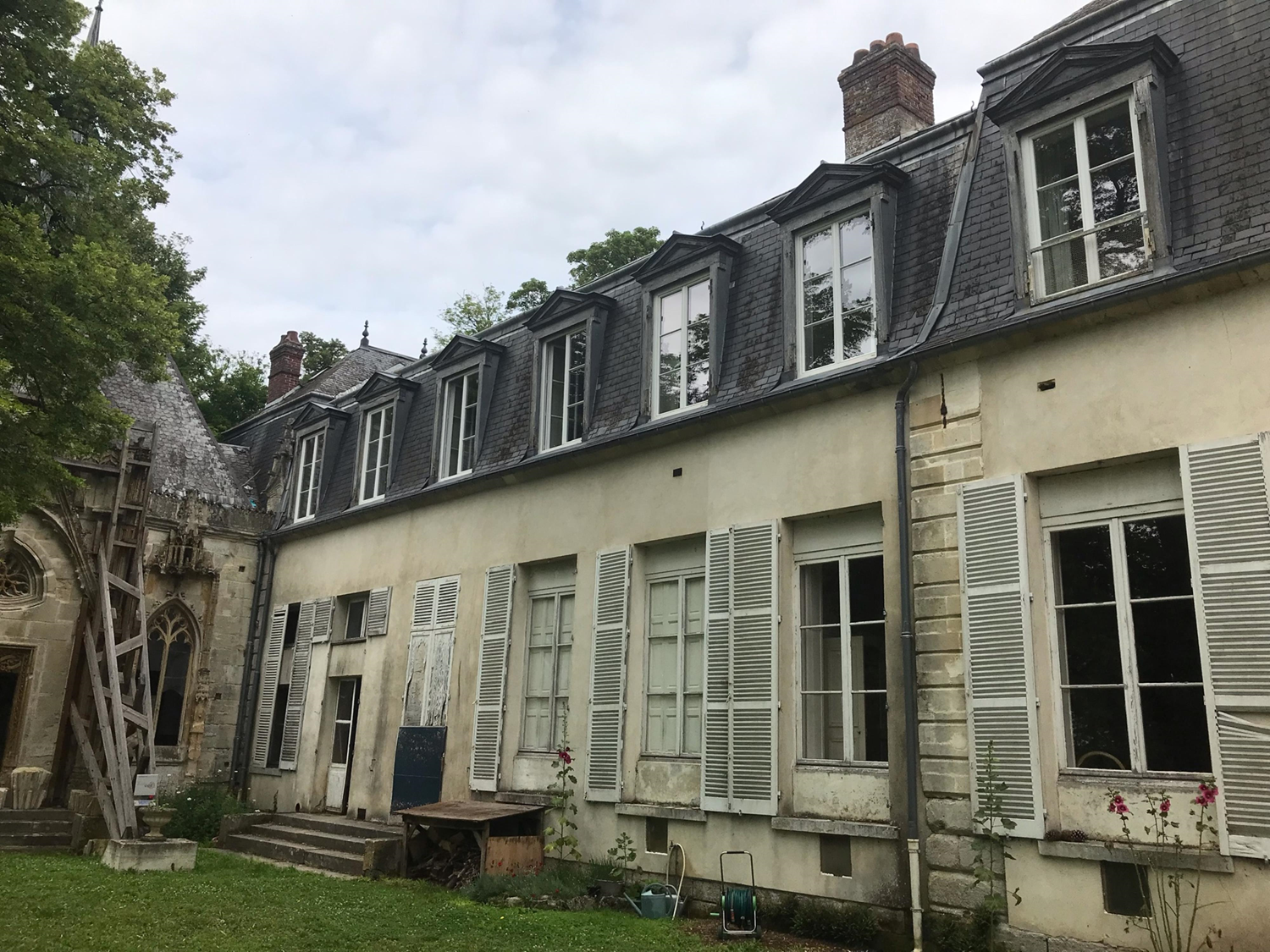 Parc du Château de Mont-l-Évèque ( Oise ). Il se trouve sur la terrasse entre le château et la chapelle. Construit entre le XVIIe et le XVIIIe siècle, il abritait les services administratifs du diocèse avant la Révolution. Au XIXe, il servait à loger les invités du château et c'est là que Joseph-Xavier de Pontalba tenta de tuer sa belle-fille en octobre 1834. Il est aujourd'hui habité.