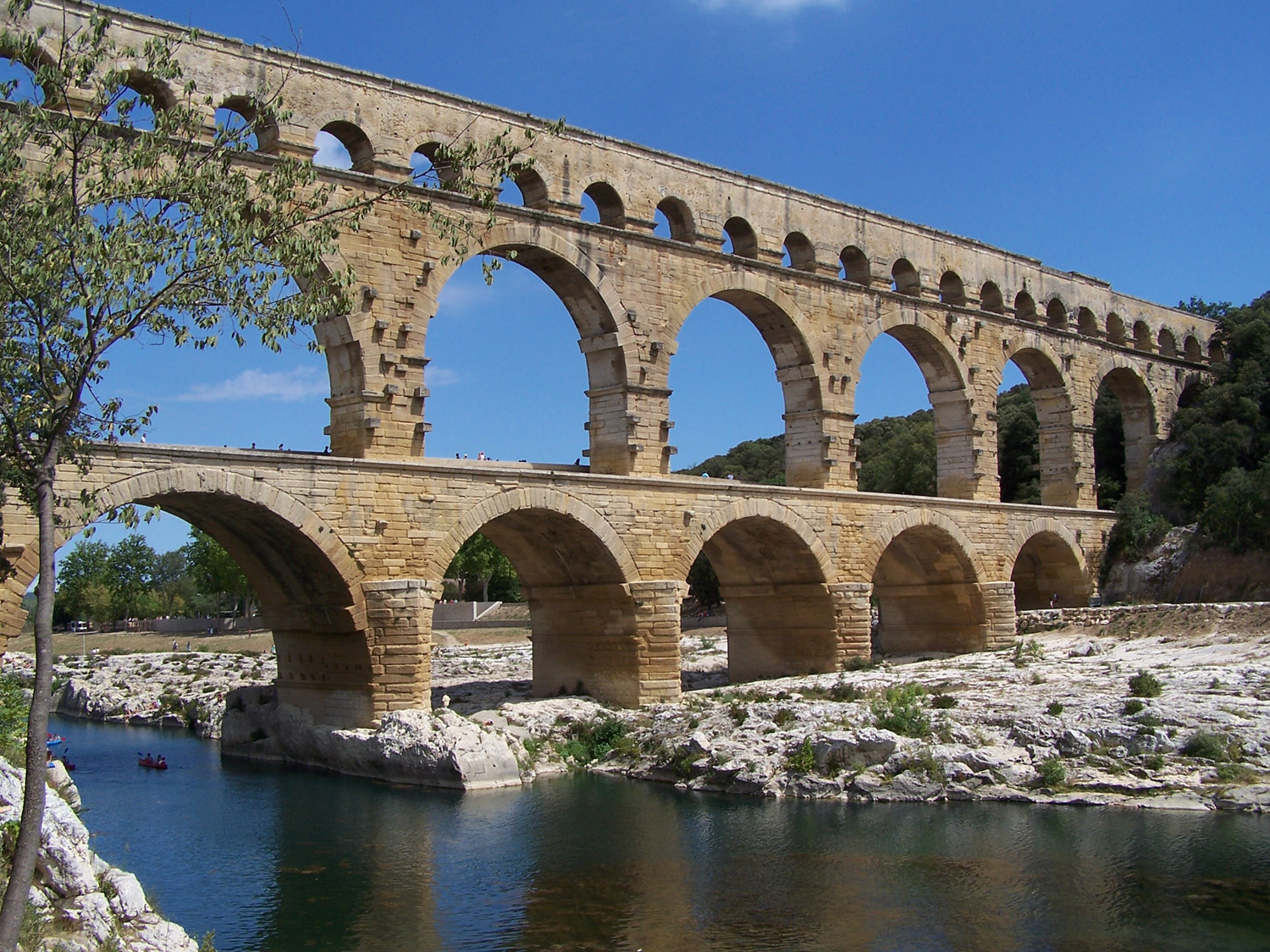 Le pont du Gard est un pont à trois niveaux destiné au passage d'un aqueduc romain. Il est situé à Vers-Pont-du-Gard entre Uzès et Remoulins.