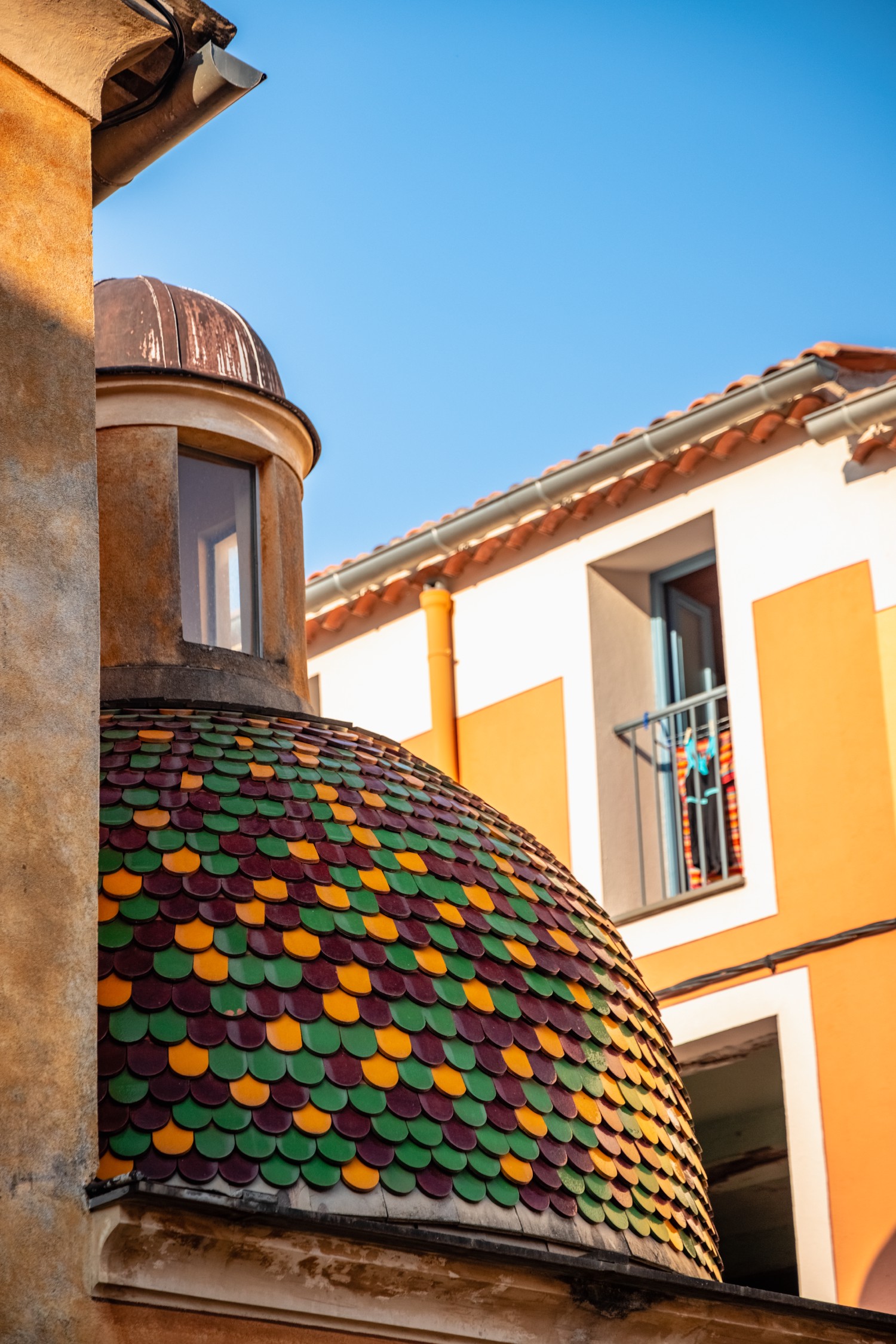Though they have been used since the 12th century, glazed flat tiles really spread in the 14th century. They colonized the bell towers and roofs of many palaces and places of worship throughout France. Glazed tiles are glazed with a layer of glass entirely made of sand and lead, while enameled glazed tiles consist of a layer of glass enriched with tin. The addition of mineral salts to these mixtures of sand, lead, and tin allows obtaining different shades (yellow, orange, green, red, brown) that, depending on the arrangement of the tiles, result in the creation of patterns.