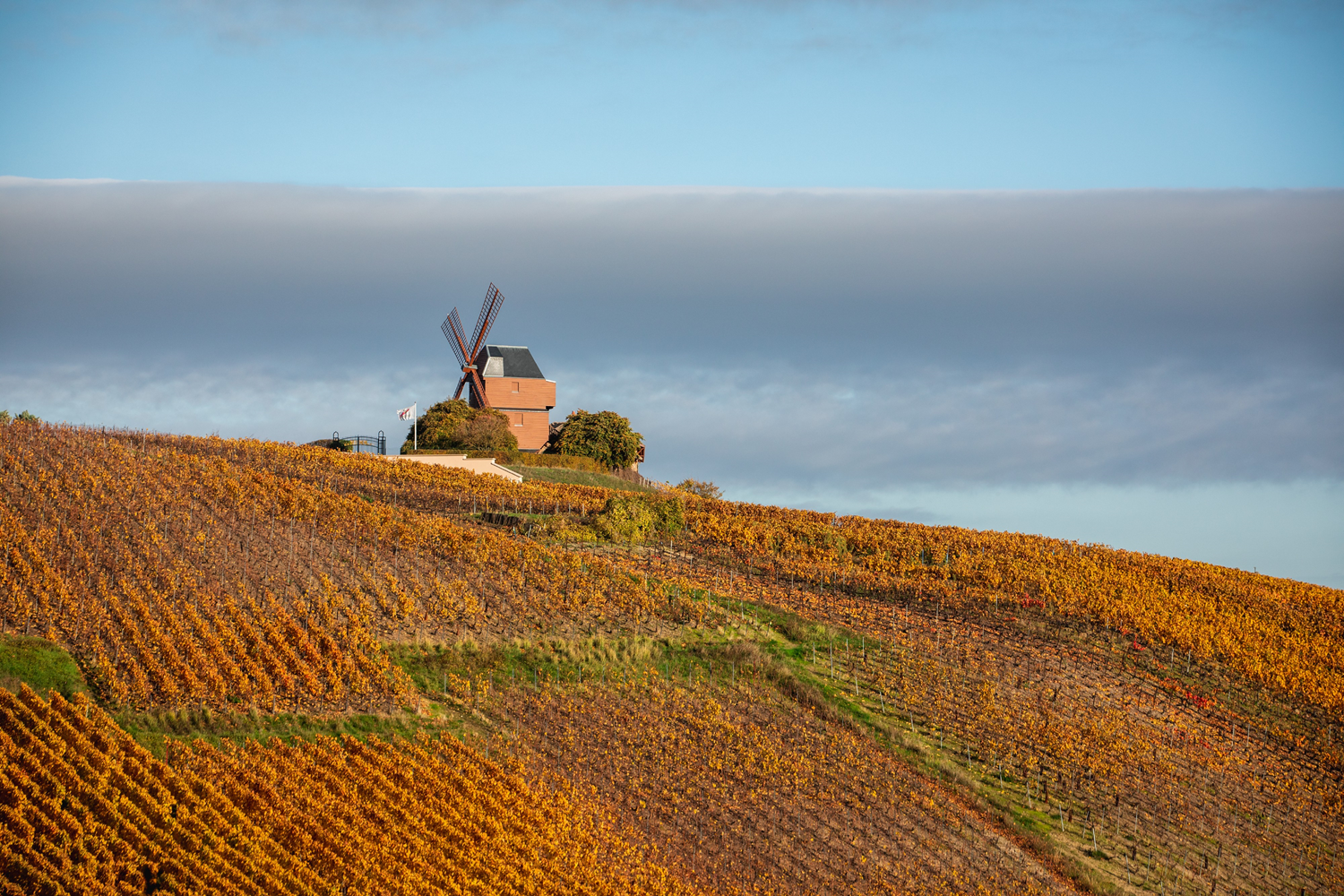 The Mill of Verzenay was built on Mont-Bœuf in 1818 by the Tinot-Vincent couple. Two turns and two buildings allowed to simultaneously grind two categories of cereals. It became an observation post during the 1914-18 war, with the digging of underground galleries, concrete chambers, etc. It was an observation post for the Americans during WWII. It was restaured in 1949. Framing, carpentry and painting work were undertaken and the four wings redone and fixed. It is classified as a historical monument.