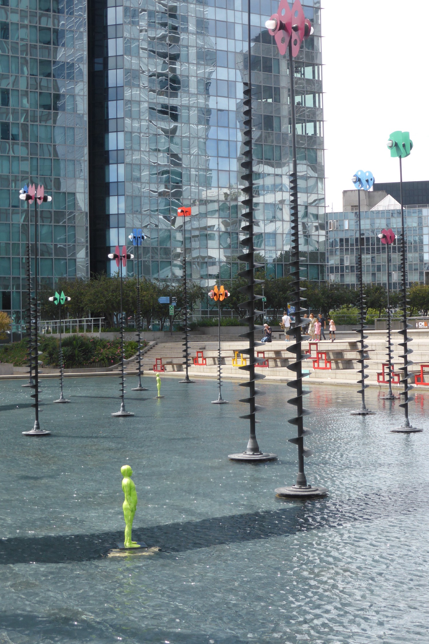 À Paris La Défense, l'artiste dissémine des petits hommes et femmes verts dont les orifices corporels déversent des filets d’eau. Ces sculptures-fontaine sont issues d'un travail initié il y a plus de vingt ans à l'occasion d'une commande publique de la commune de Bessines (Deux Sèvres).