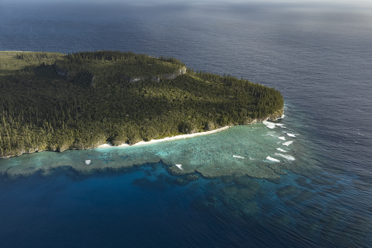 The island of Maré, in the Loyalty Islands, has a fairly massive shape fitting into a 19mi (30km) sided square. Its perimeter is stretched by different capes which draw the branches of a star. Starting from the northeast and turning clockwise, they are the Roussin, Coster, Boyer, Wabayoc, Washoc, Medu, Wabao (photo), and Machau capes separating the Allier, Shabadran, Wabao (or Niri), Tadine and North bays.
