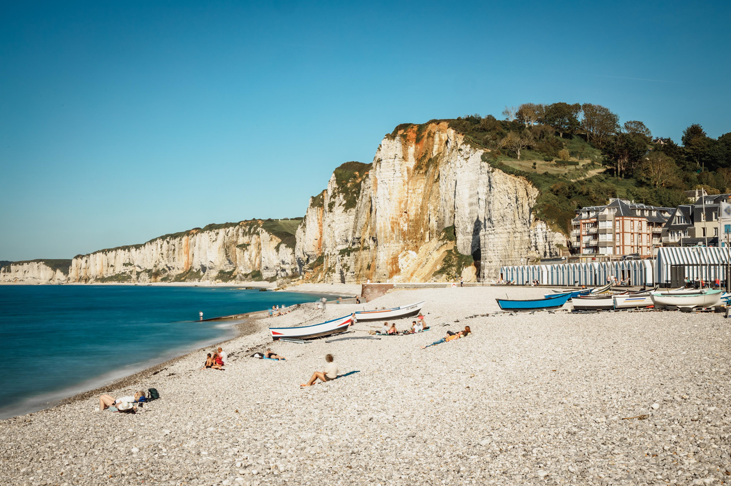 While strolling along the Yport seafront in Normandy, visitors can observe the famous cliffs of the Côte d'Albâtre (Alabaster Coast). They also encounter numerous boats left on the beaches. These small crafts are dories, workboats of American origin first used to facilitate departure from the beach. Subsequently, the flat-bottomed boats were used for cod fishing on the banks of Newfoundland. Their light construction indeed allowed them to be stacked on the deck of the schooner leading the fishing campaign.
