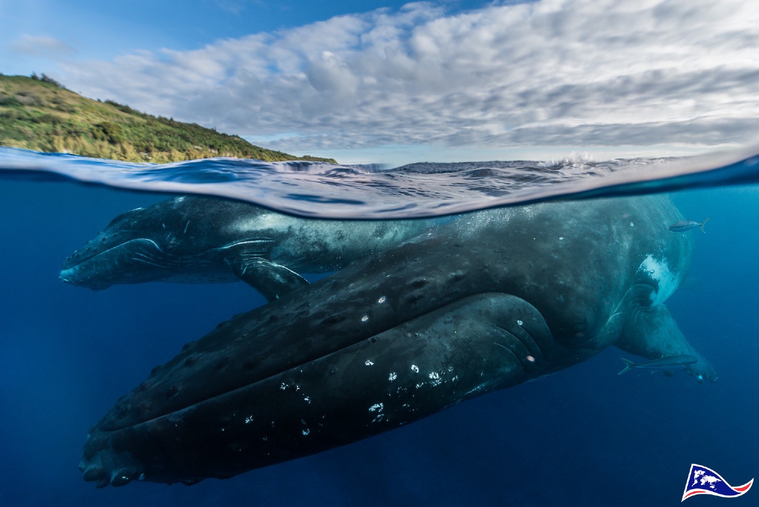 Because of its geological uplift, Rurutu has almost no lagoon and its waters are very shallow (164 feet / 50 m). It is thus possible to observe the whales swimming around the island within 328 feet (100 m) of the coasts and to see them from the surface even when they are on the ocean floor. Furthermore, the central north-south mountain, protecting alternately the east and the west coasts, allows navigation in spite of the polar depressions of the austral winter.