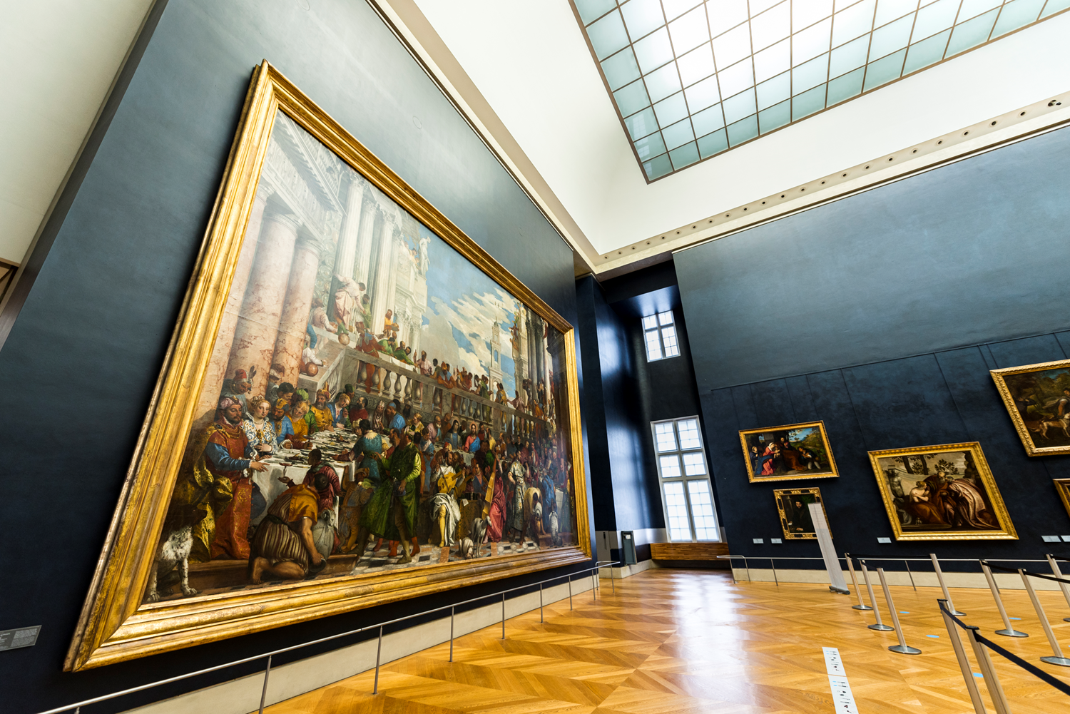 The collection of 16th century Venetian paintings on display at the Louvre is unique outside of Venice. The walls of the ‘Salle des Etats’, renovated in 2019, are clad in a midnight blue tone that highlights it. Titian (Tiziano Vecellio), Tintoretto (Jacopo Robusti), Veronese (Paolo Caliari) and Leonardo da Vinci made Venice, and now the Louvre, shine with their spectacular large-scale compositions such as ‘The Wedding at Cana’ (Veronese), ‘The Coronation of Thorns’ (Titian) and ‘The Deposition’ (Jacopo Bassano). The intimacy of ‘Man with a Glove’ (Titian) and ‘Portrait of a Gentleman’ (Tintoretto) can also be seen, as well as ‘Mona Lisa’ (Leonardo da Vinci).