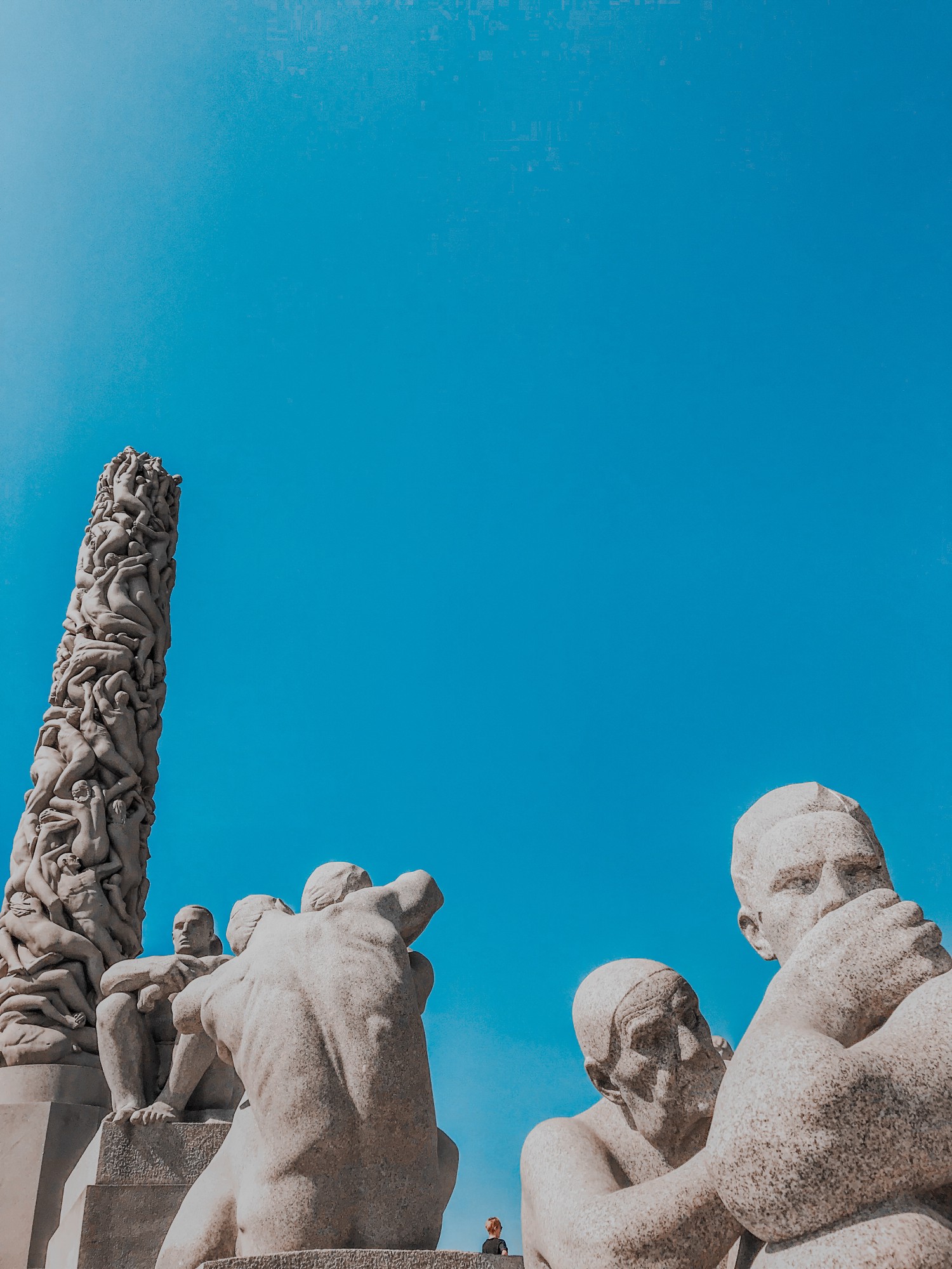 Dans le parc de Frogner, à Oslo, on peut admirer des centaines de statues peu communes réalisées par Gustav Vigeland. On trouve notamment un monolithe de 14 mètres de haut au centre du parc où les corps ont été taillés à partir d'un seul bloc de pierre. Un parc atypique qui vaut le détour !