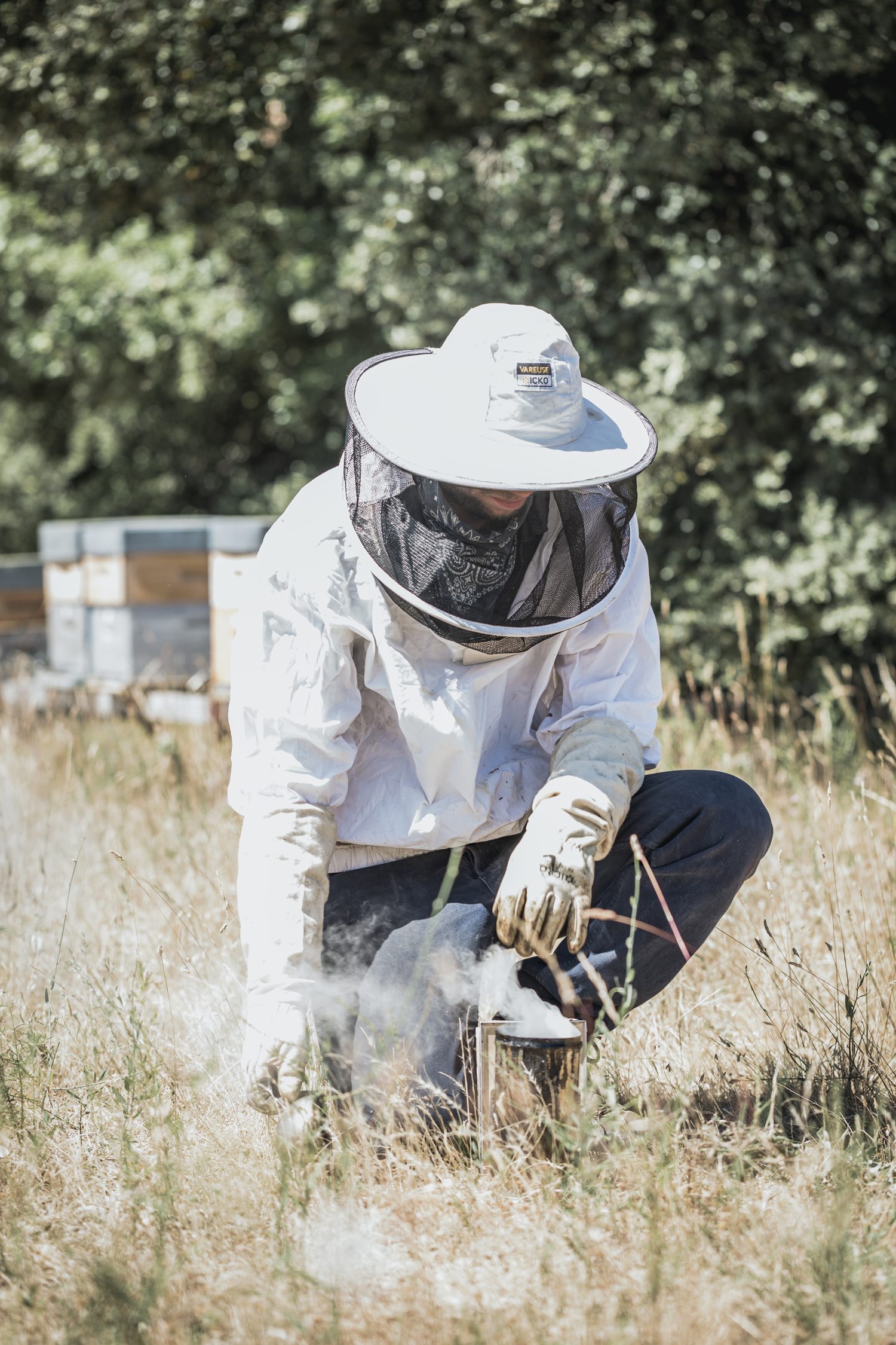 The beekeepers' outfits are protective clothing that ensures their safety. Coveralls, smocks, gloves, hats, veils, and jackets are designed to provide them with optimal protection against stings without hindering their freedom of movement. The choice of the white color, soothing for the bees, is also a matter of security concerns, dark colors being assimilated by the bees to predators or natural holes in which they can rush.