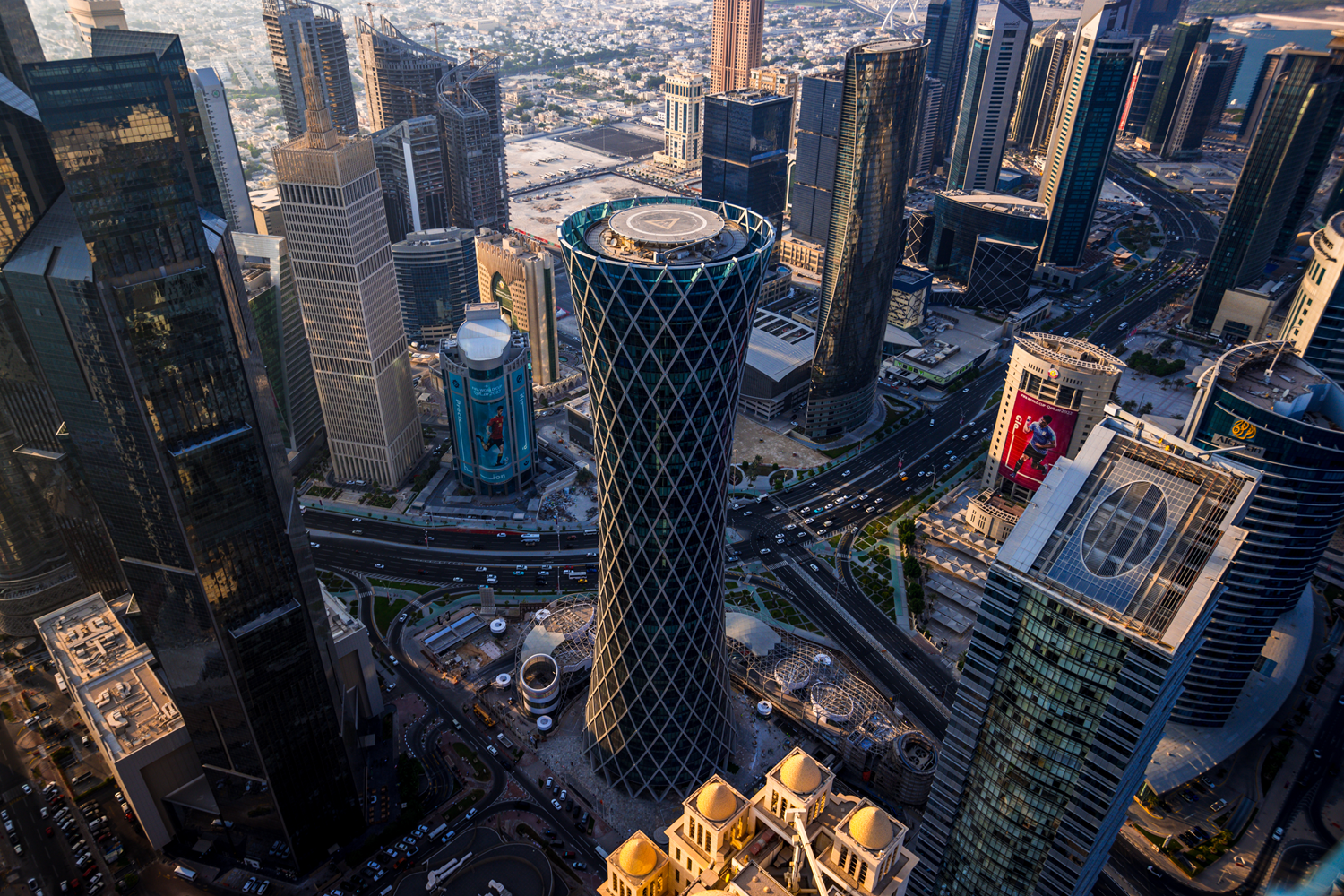 On the occasion of the 2022 FIFA World Cup, Qatar unveiled to the world pharaonic architectural creations signed by the greatest names in world architecture such as Jean Nouvel, Norman Foster, Ieoh Ming Pei, Rem Koolhaas, Arata Isozaki, Zaha Hadid or César Pelli. Free of financial constraints, the architects had only the sky as their limit. The business district of West Bay (Doha) is home to some of the most astonishing towers. For example, the Al Dana Tower with its spherical pearl-shaped conference room suspended from the 20th floor of the building. Or the 722 feet (220 metres) curved and aerodynamic Navigation Tower, which is reminiscent of a ship’s sail. Or – in the centre of the photo – the Tornado Tower with its hyperbolic shape animated at night by lighting effects.