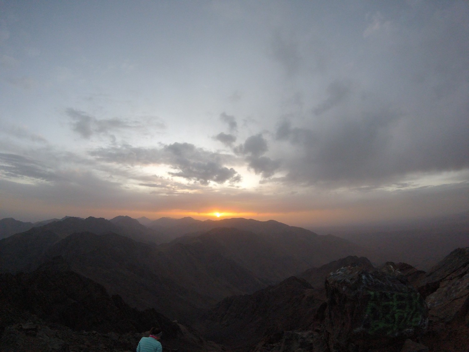 Lever du soleil au sommet du Mont Toubkal, plus haut sommet d’Afrique du Nord, situé dans la chaîne de l’Atlas au Maroc.