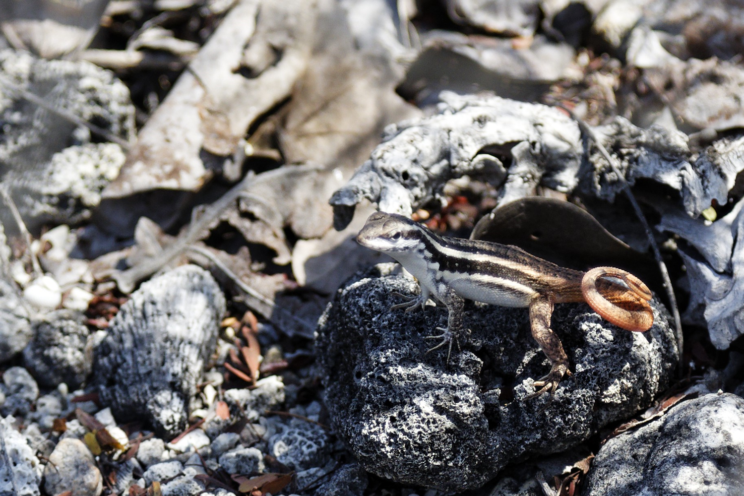 Leiocephalus lunatus. La position particuliére de sa queue est un outil de communication.