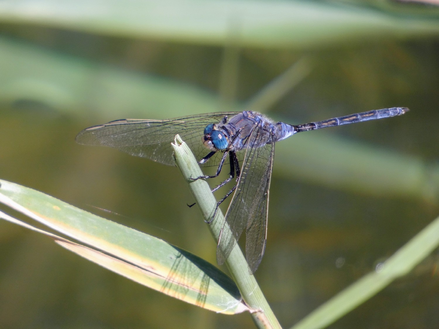 Odonato de unos 5-6 cm de tamaño, el mayor del género Orthetrum. Los machos son de color azul oscuro a lo largo de todo el cuerpo. La cabeza tiene una cara de tonos amarillentos, con grandes ojos azulados, un aparato bucal desarrollado y unas antenas cortas.