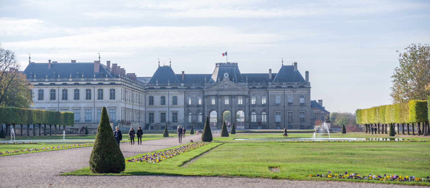 Le parc des Bosquets (jardin à la française) et le château de Lunéville.