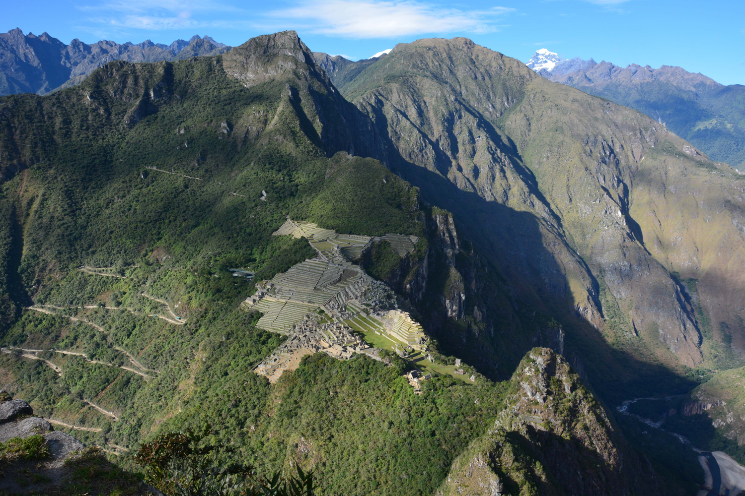 Le Huayna Picchu se situe au Pérou dans le versant oriental de la cordillère des Andes. Il se trouve sur le même promontoire que le Machu Picchu. Situé à quelques centaines de mètres au nord de l'ancienne cité inca, son sommet culmine à 2 720 m d'altitude, dominant d'environ 360 mètres le site historique de l'ancien site inca.