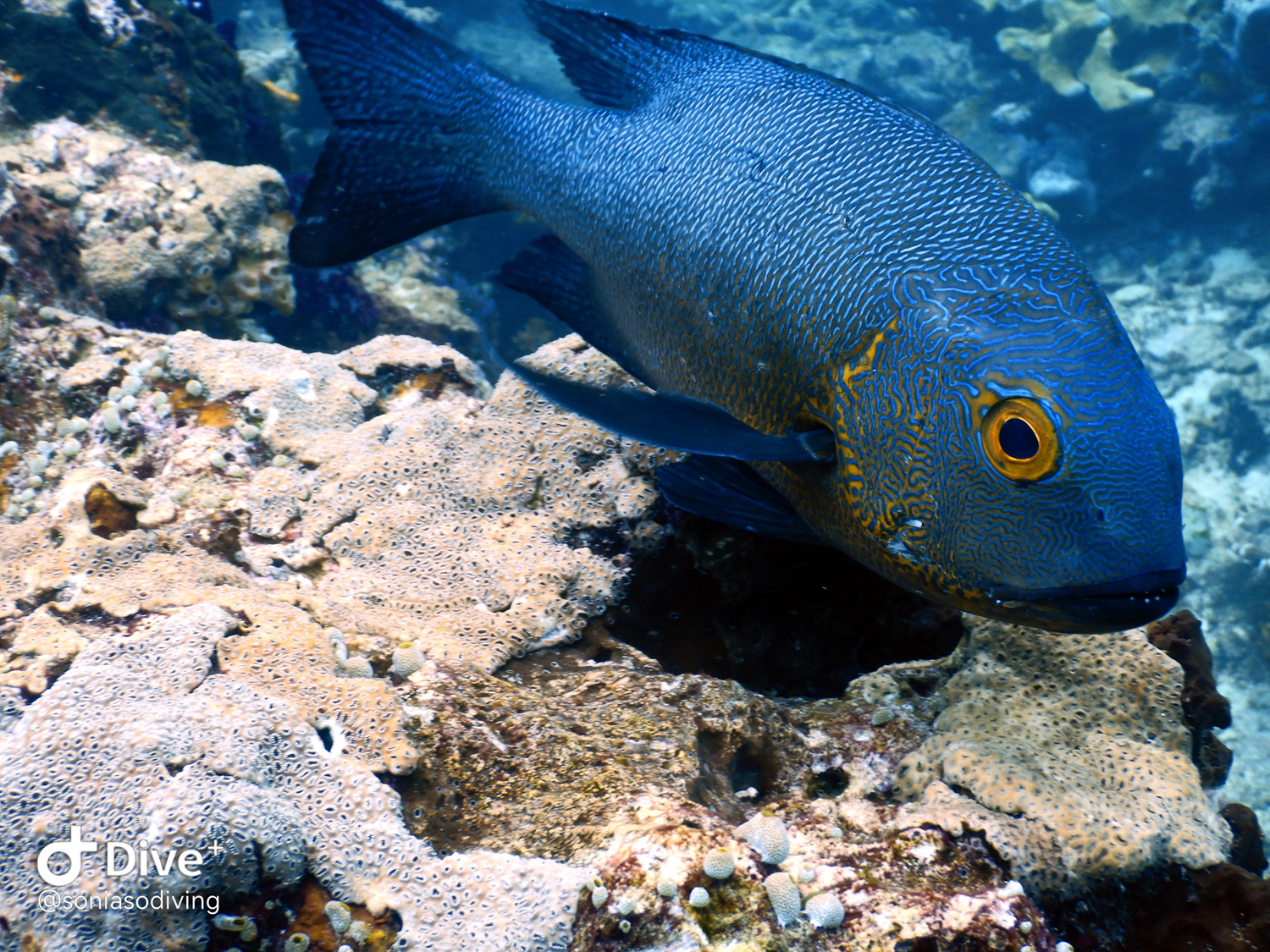 Le vivaneau de minuit est une merveille avec ses lèvres bien dessinées, comme si il/elle était maquillé(e) famille des Lutjanidés