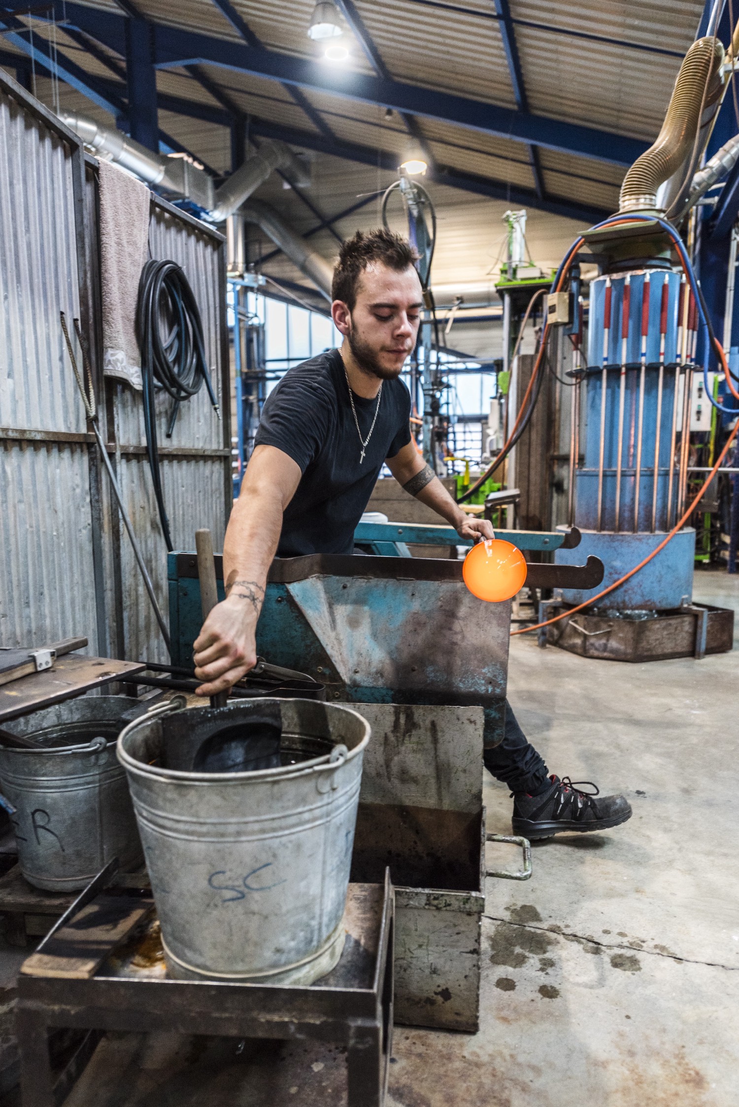 The blown glass technique is attributed to the Phoenicians or Babylonians in the 1st century BC, with the invention of the blowing cane. The equipment of the glass craftsmen hardly evolved from Antiquity to the 18th century. It includes the cane, the pontil (an iron or steel rod used to secure the glass part from the bottom), metal irons and scissors, fireclay molds and crucibles, pallets, and mallets. Though it appears rudimentary, the manipulation of the equipment requires high mastery.
