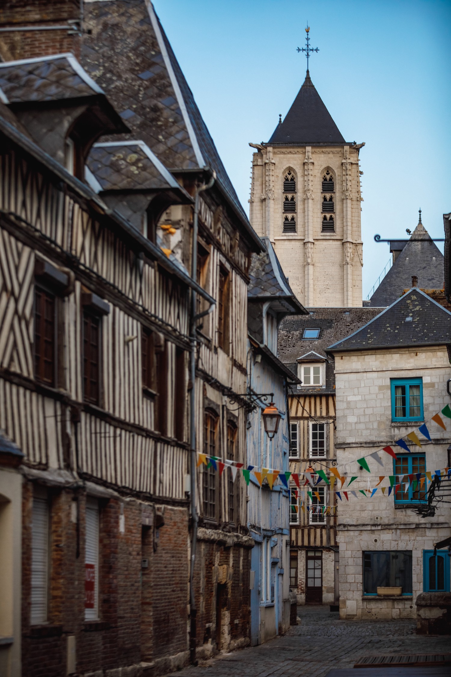 In architecture, a corbel is a protruding construction on a building, in this case, houses with overhanging floors. Used in Normandy since the end of the Middle Ages, this technique became even more popular during the Renaissance. Corbelling offered several advantages: it allowed owners to gain surface area on each floor, and to pay less taxes, which were calculated according to the surface area of the ground floor. Finally, it prevents rainwater from running off the façade, as each corbelled floor protects the floor below.