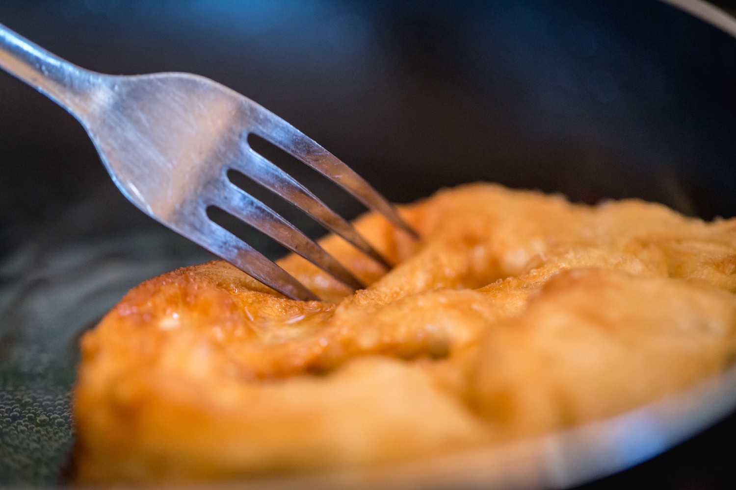 Flatbread or bannock, muqpauraq in Inuktitut, is a traditional recipe of North American Native. It is made with flour, baking powder, and animal rendered fat. Inuits consume local foods obtained from fishing, hunting, and gathering and share it with the entire community.