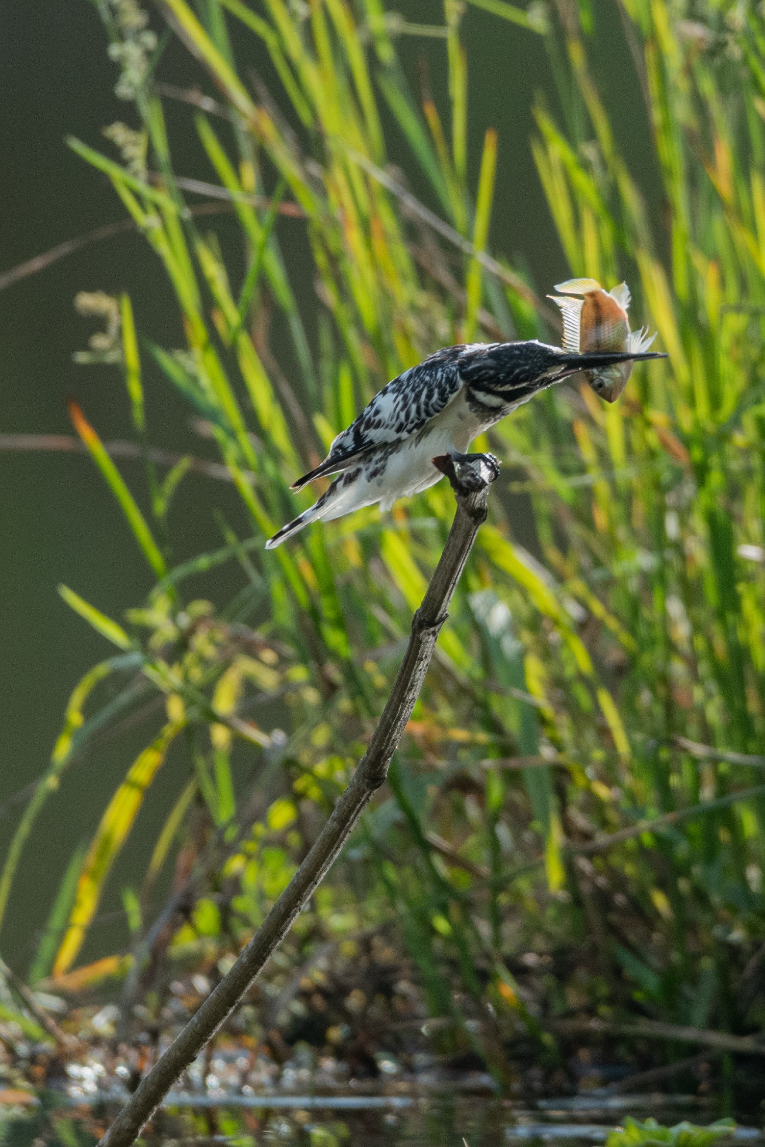 martin pecheur pie poisson au bec