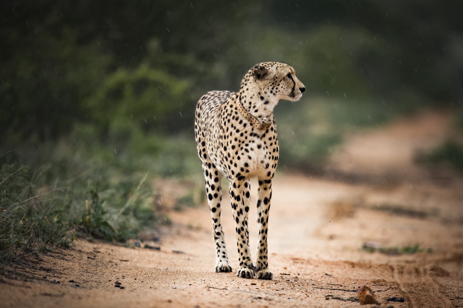 The cheetah has a particularly slender silhouette with thin limbs. Its most developed muscles are those of its hind legs, which allows it to make big leaps but also to run at a top speed of 68miles/h (110km/h).