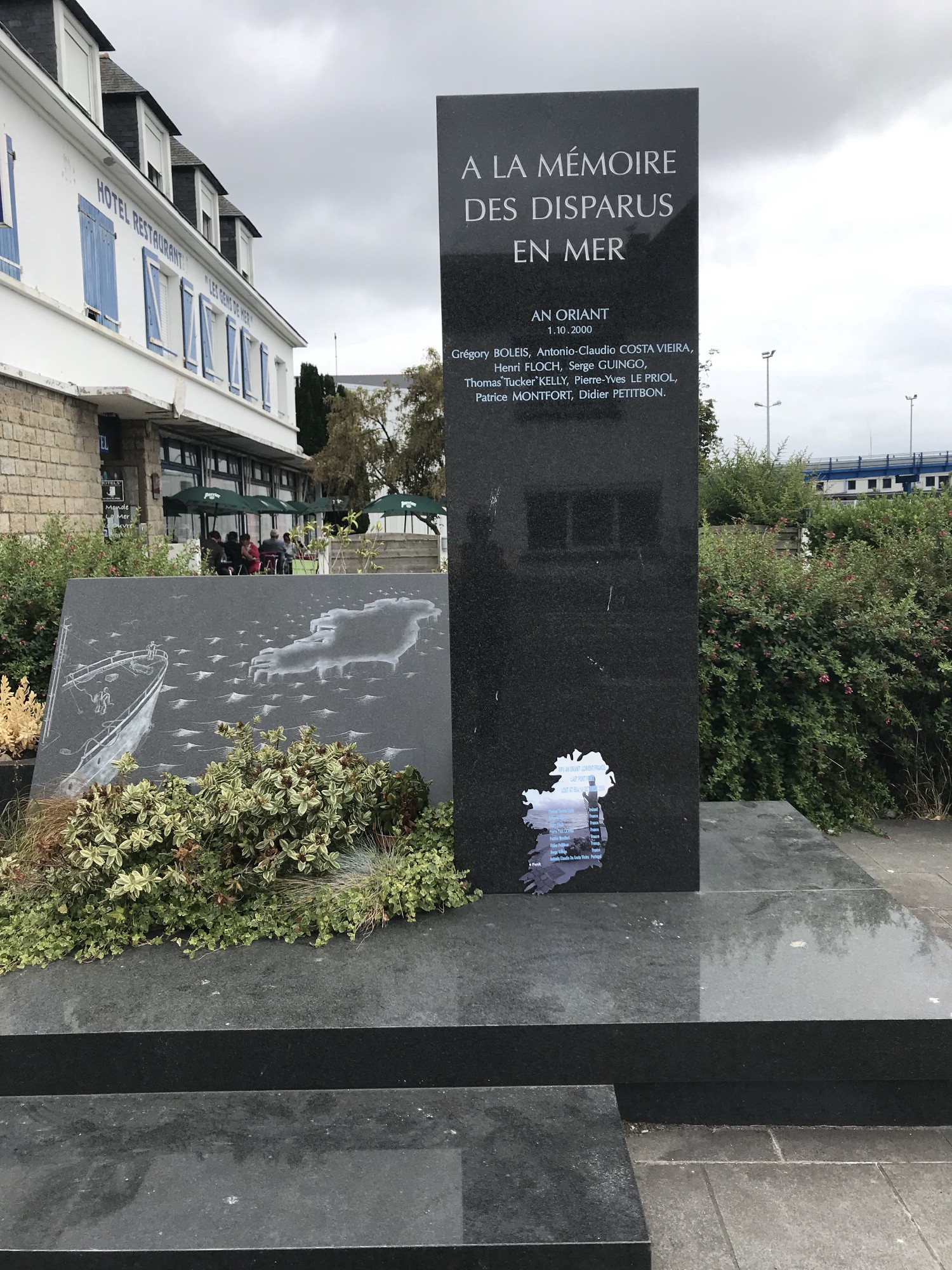 Stèle érigée en souvenir du naufrage du chalutier An Oriant au large de Galway en Irlande et des 8 marins disparus dont 6 demeurant dans le Pays de Lorient